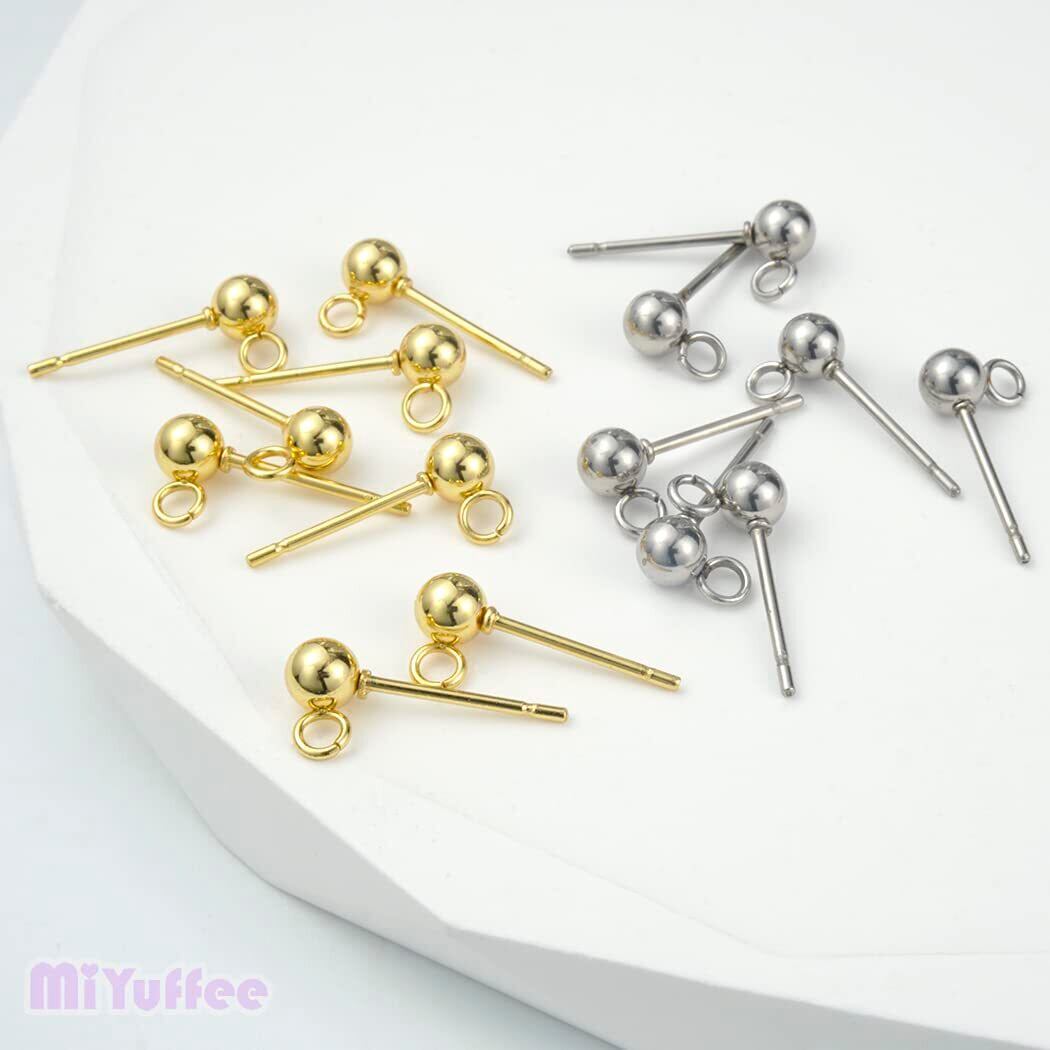 素材:サージカルステンレス 個数:20ペア40個(各色10ペア20個) カラー:ゴールド、シルバー サイズ:丸玉4mm、全長約15mm