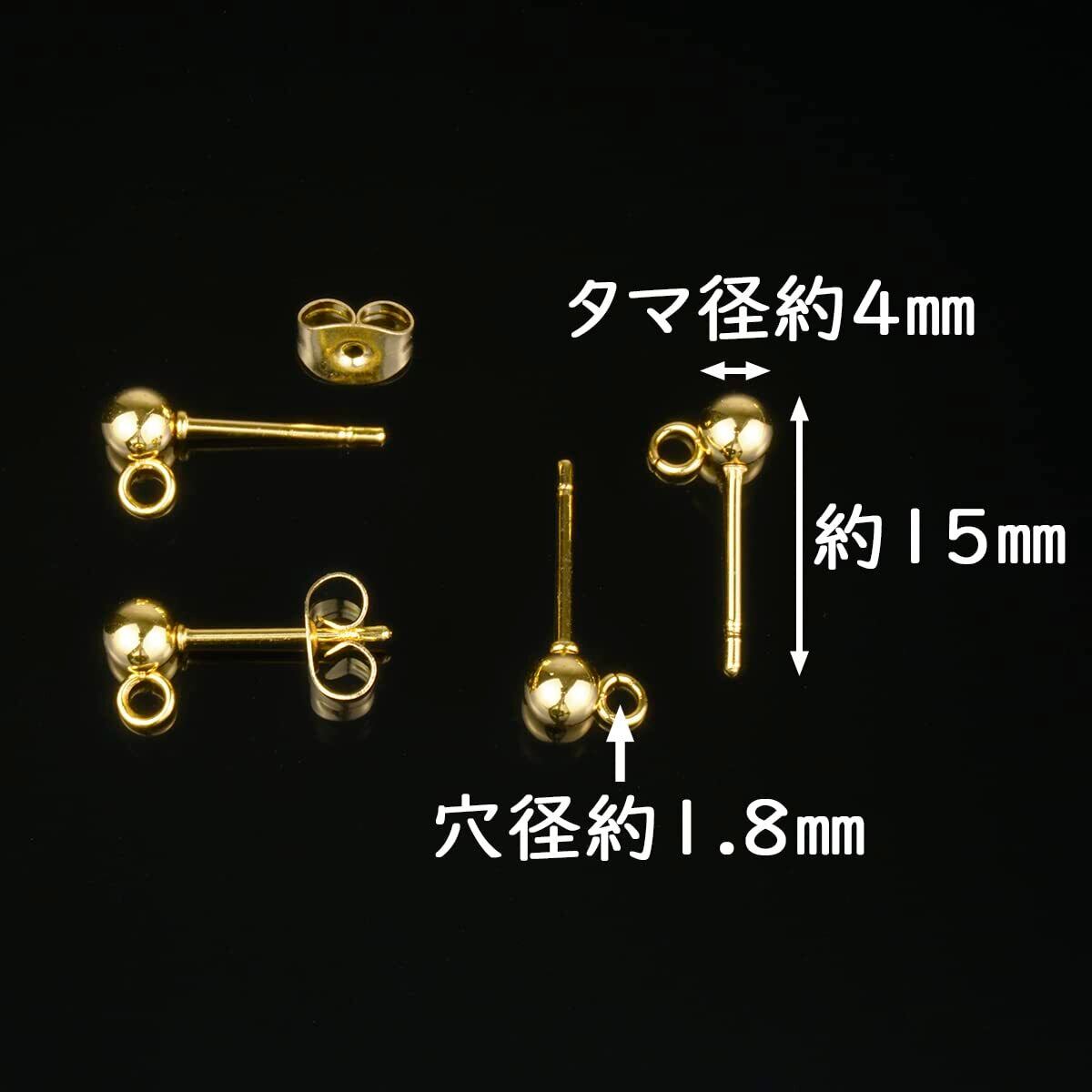 サージカルステンレス ピアス パーツ 4mm 丸玉 カン付き キャッチ付き ゴールド シルバー 2色20ペア40個 セット