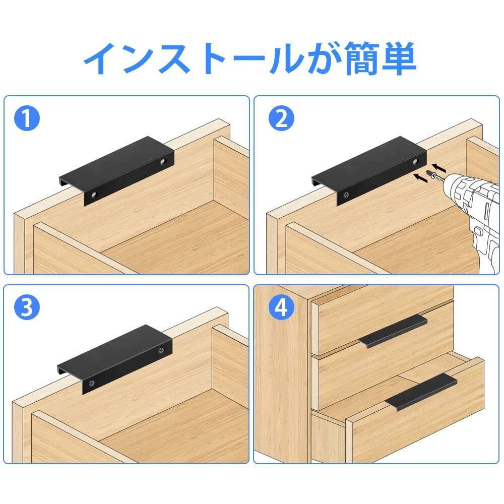 【簡単な取り付け】:各黒い引き出しエッジプルには2本のネジがあり、手動または電動ドライバーだけで数分で取り付けることができますが、表面の完全性を維持するために、取り付ける前に事前にドリルで穴を開ける必要があります。注意:ハンドルの厚さは1mmです。