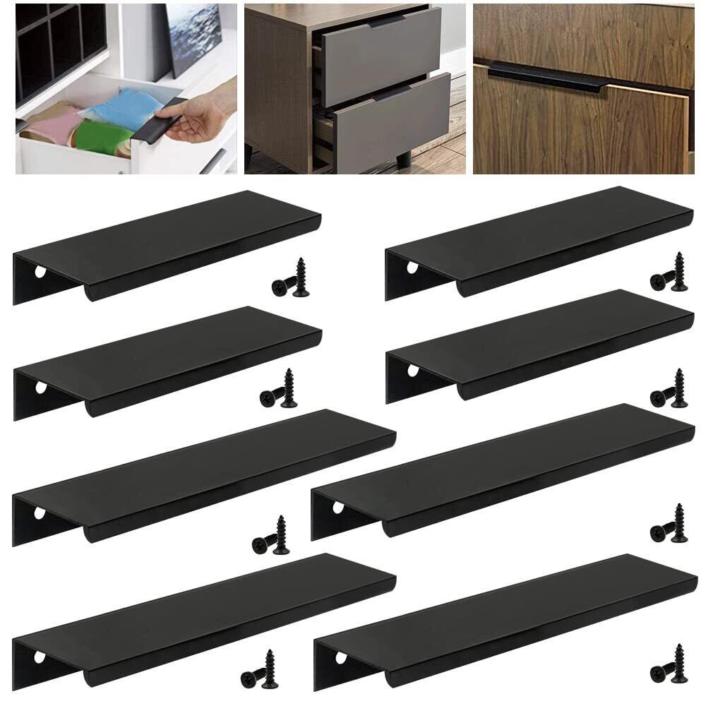 WETARENDA ドア取っ手 ドアハンドル 8個セット 引き出し 取っ手 取っ手 アルミニウム合金 隠しドアハンドル 引き出しつまみ 戸棚 ノブ 収納棚 ハンドル 建築金具ツマミ 食器棚 キャビネット ネジ付き ブラック