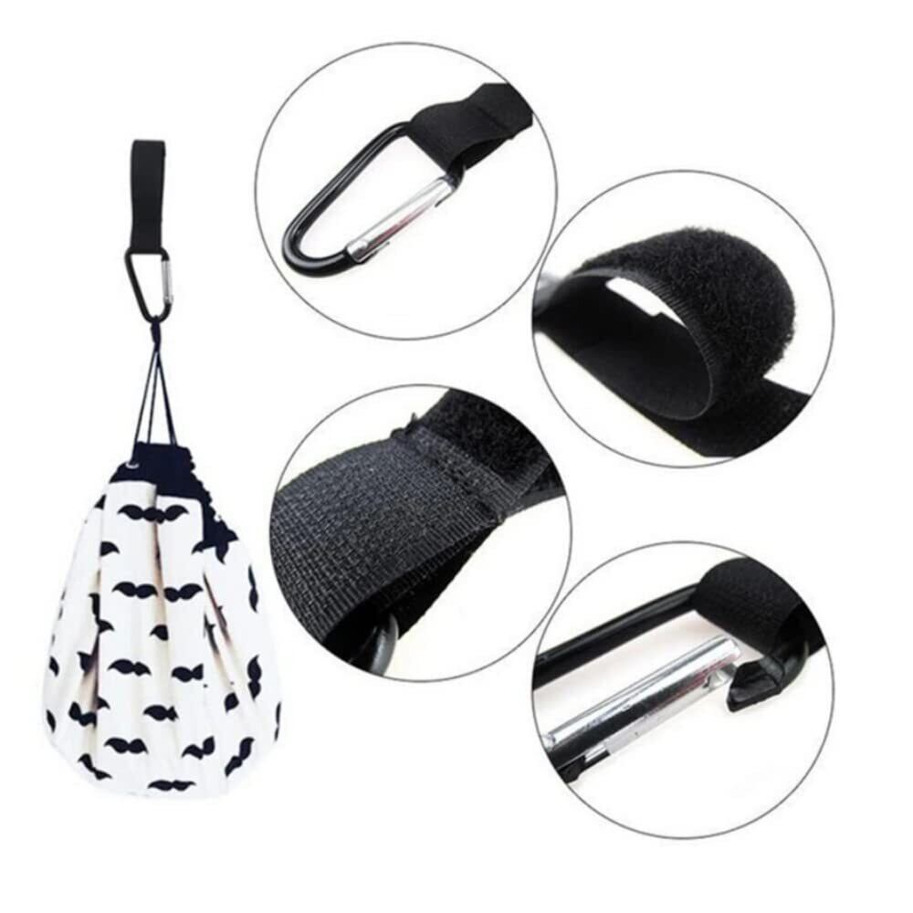 【フックの機能】フックは360度回転し、揺れのクッションバランス効果があります。 乳母車フックは、荷物を軽くして運びやすくするだけでなく、乳母車内の収納スペースにも貢献します。