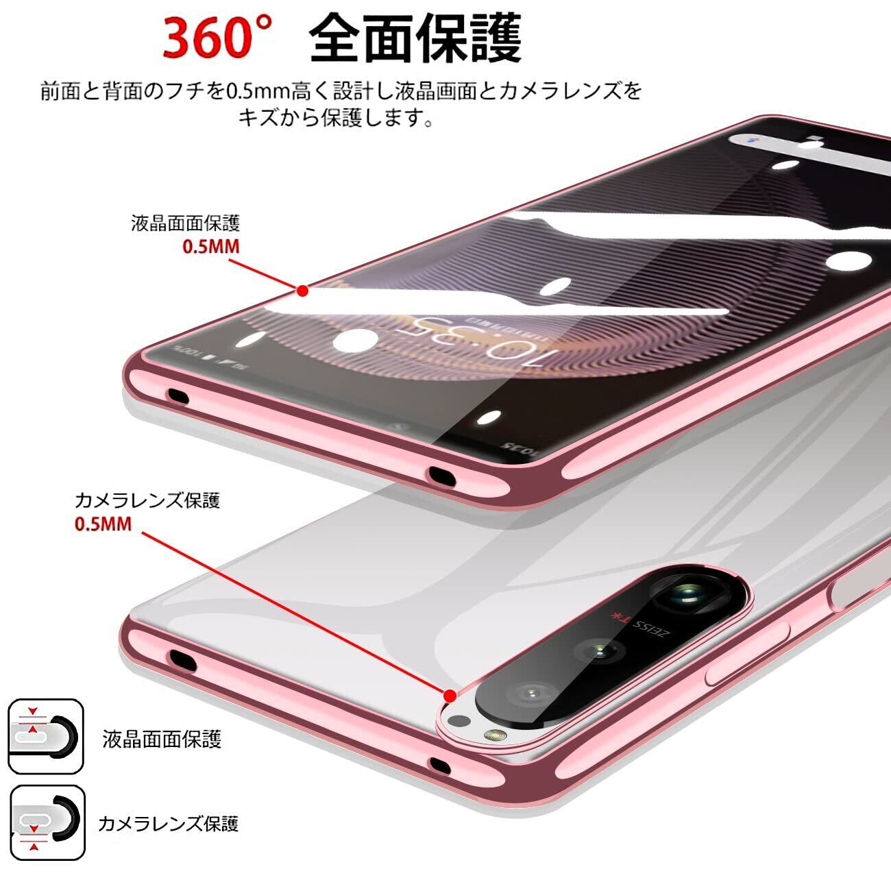 Xperia 5 III ケース クリア TPU 薄型 SOG05 スマホケース SO-53B カバー 耐衝撃 スリム 透明 シリコン 黄変防止 ストラップホール付き Sony エクスペリア5III ケース(ローズゴールド)