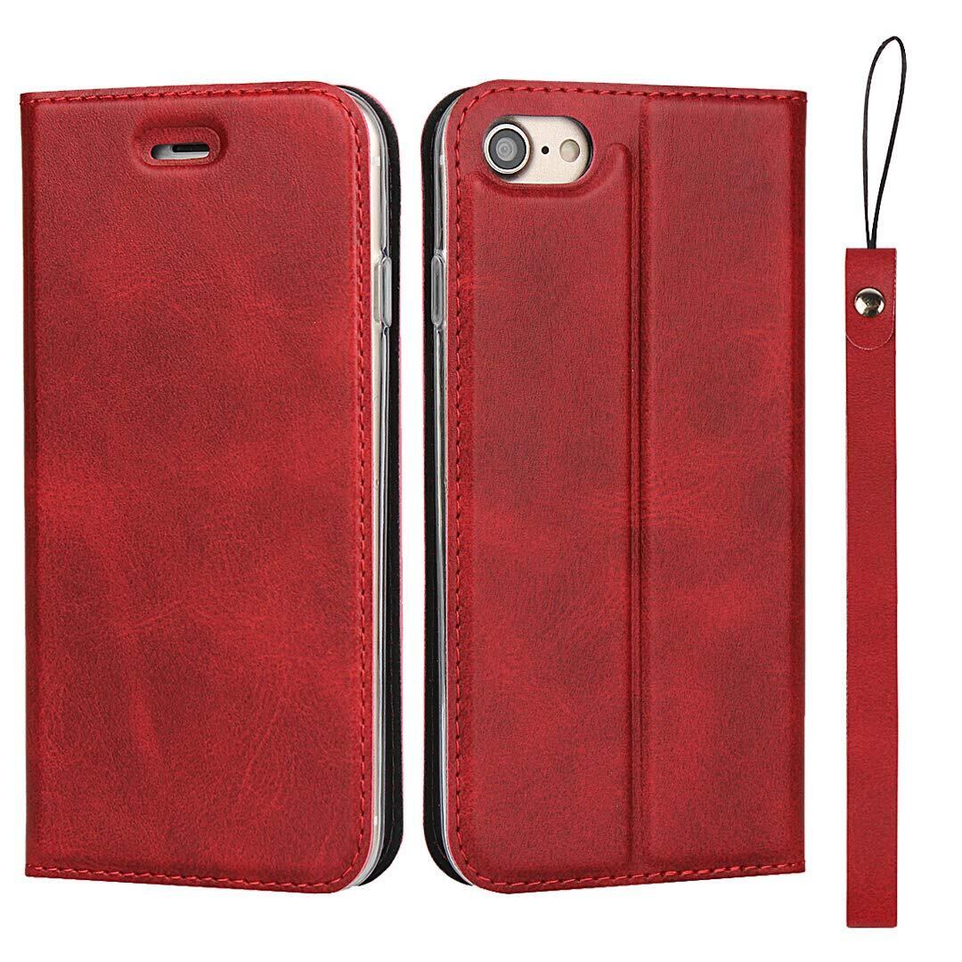 Pelanty for iPhone SE 2022 第3世代/ SE 2020 第2世代 iPhone 7 手帳型ケース iPhone 8 携帯カバー PUレザー スマホケース カード収納 スタンド機能 衝撃吸収 ストラップ付き マグネット式 アイフォンse2/se3/8/7 ケース 全面保護カバー 軽量薄型 耐衝撃 レッド
