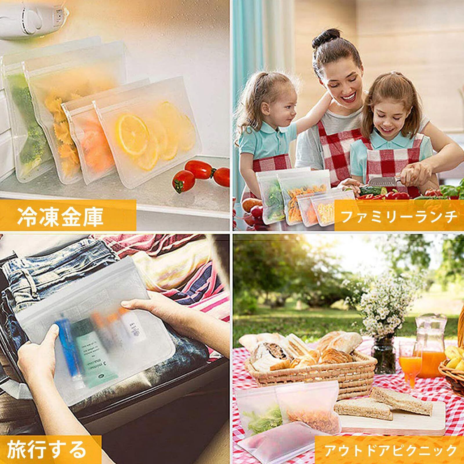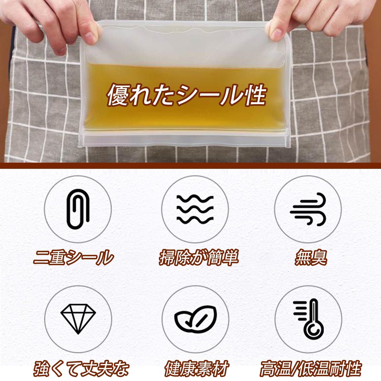 耐久性:バッグは衛生的で防水性があり、食品や液体の保管と保存に非常に適しています。冷蔵庫は安全です。
