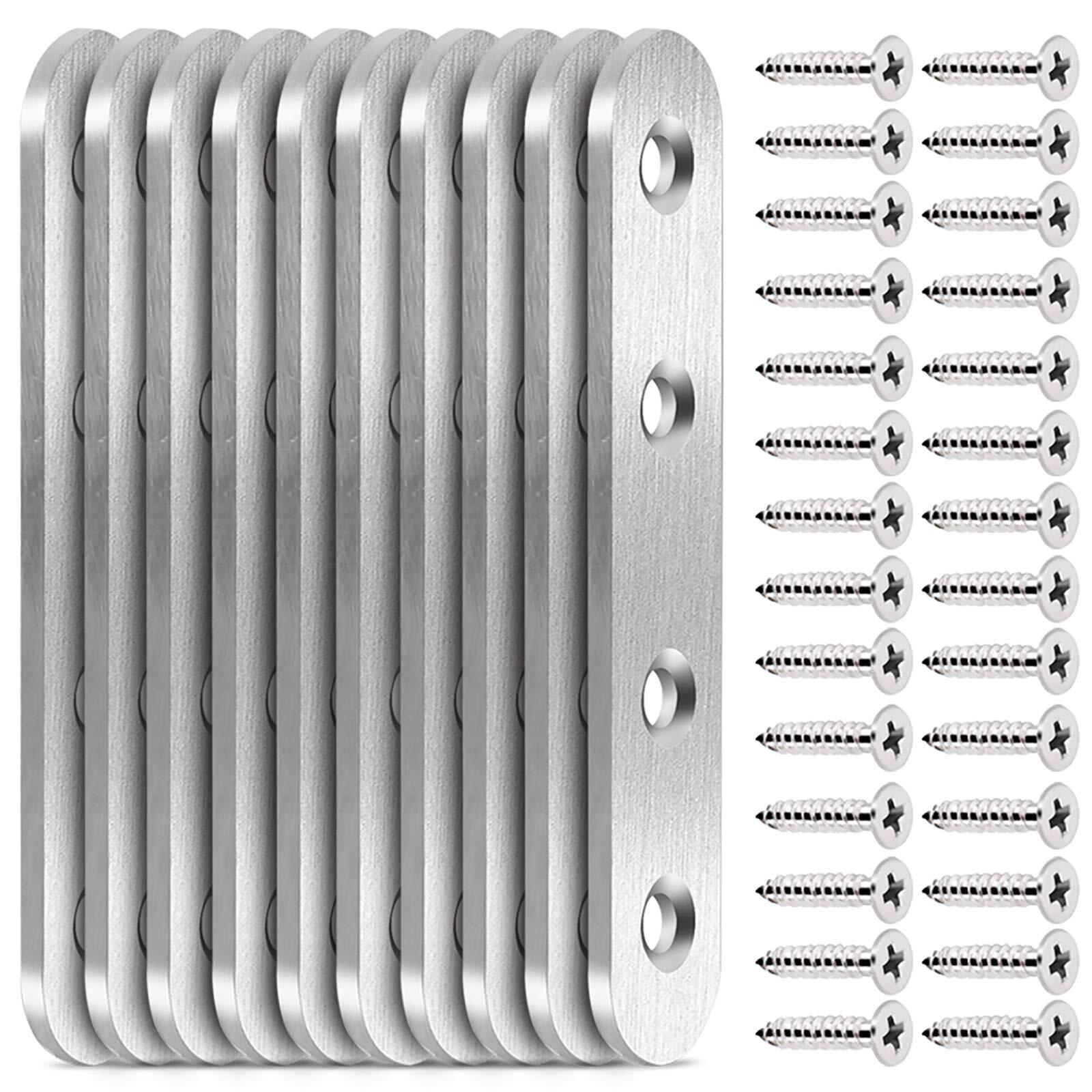 Teenitor ジョイント金具 フラット ステンレス アングル 接合金具 100×20×3mm フラットプレート ブラケット金具 連結金具 10個 ステンレスネジ 40個 フラット修理プレート 固定板 プレート 棚受け金具