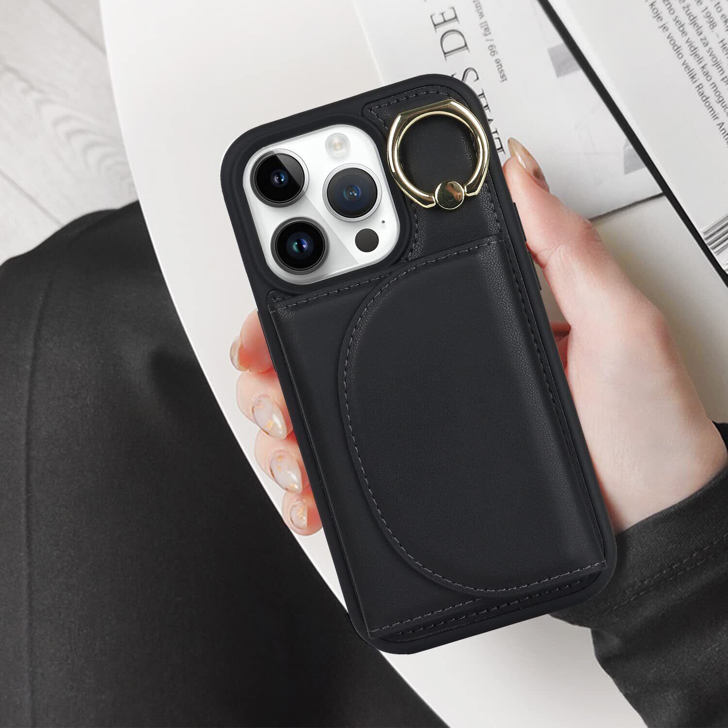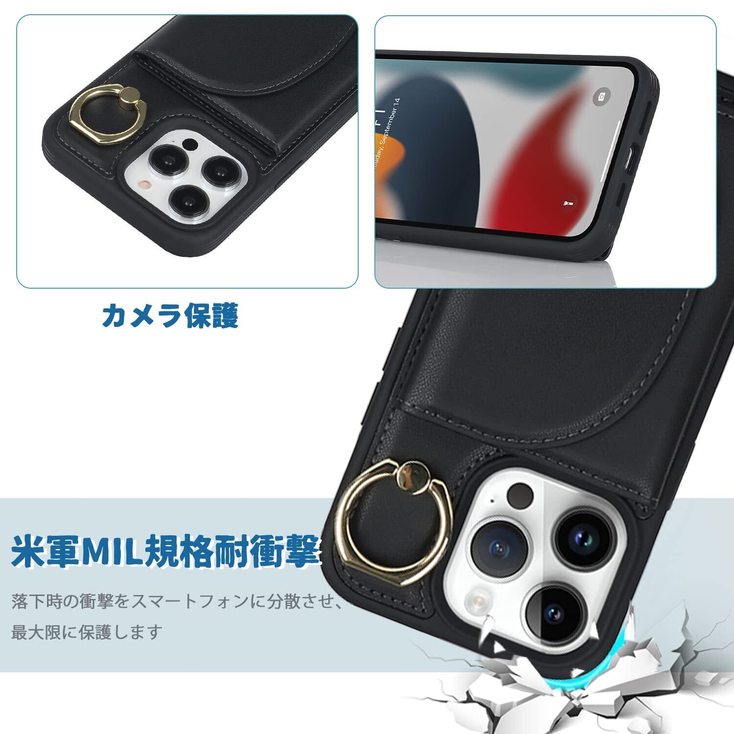 Havaya iPhone14ProMax ケース 米軍MIL規格 iphone 14 pro max ケース アイフォン14promaxケース スマホケース 手帳型 リング付き 耐衝撃 カード収納(アイフォン14promax/アイホン14プロマックス/アイフォン14プロマックス/あいふぉん14promax 通用 6.7インチ対応)-ブラック