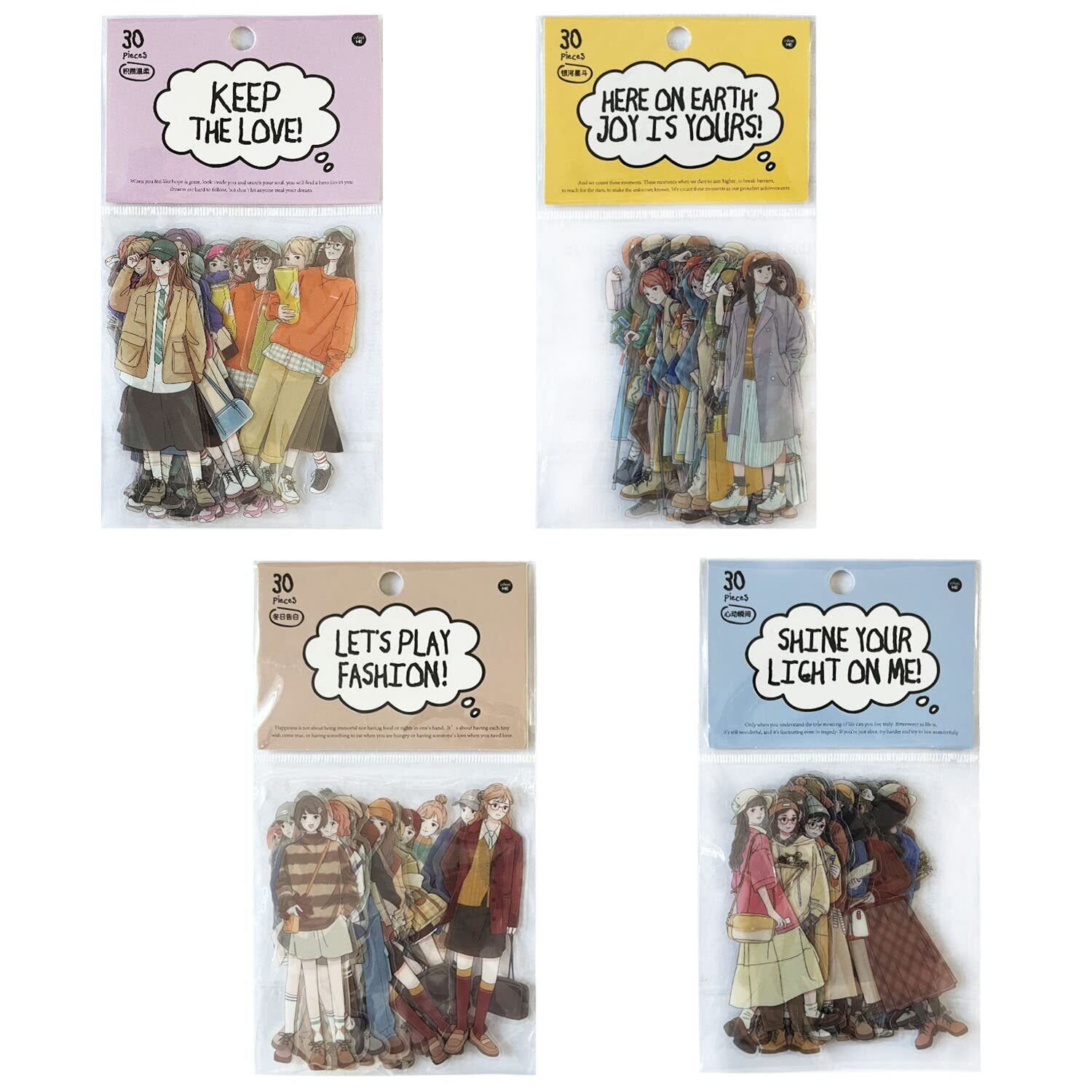 各パックには 15 種類のスタイルがあり、各スタイルには 2 枚のシートがあり、1 パックには合計 30 枚のシートがあり、4 パック、合計 120 枚の女の子のステッカーが入っています。