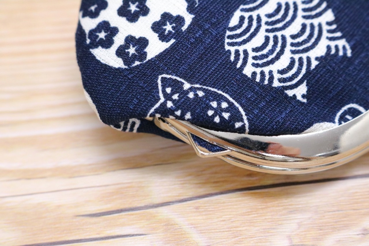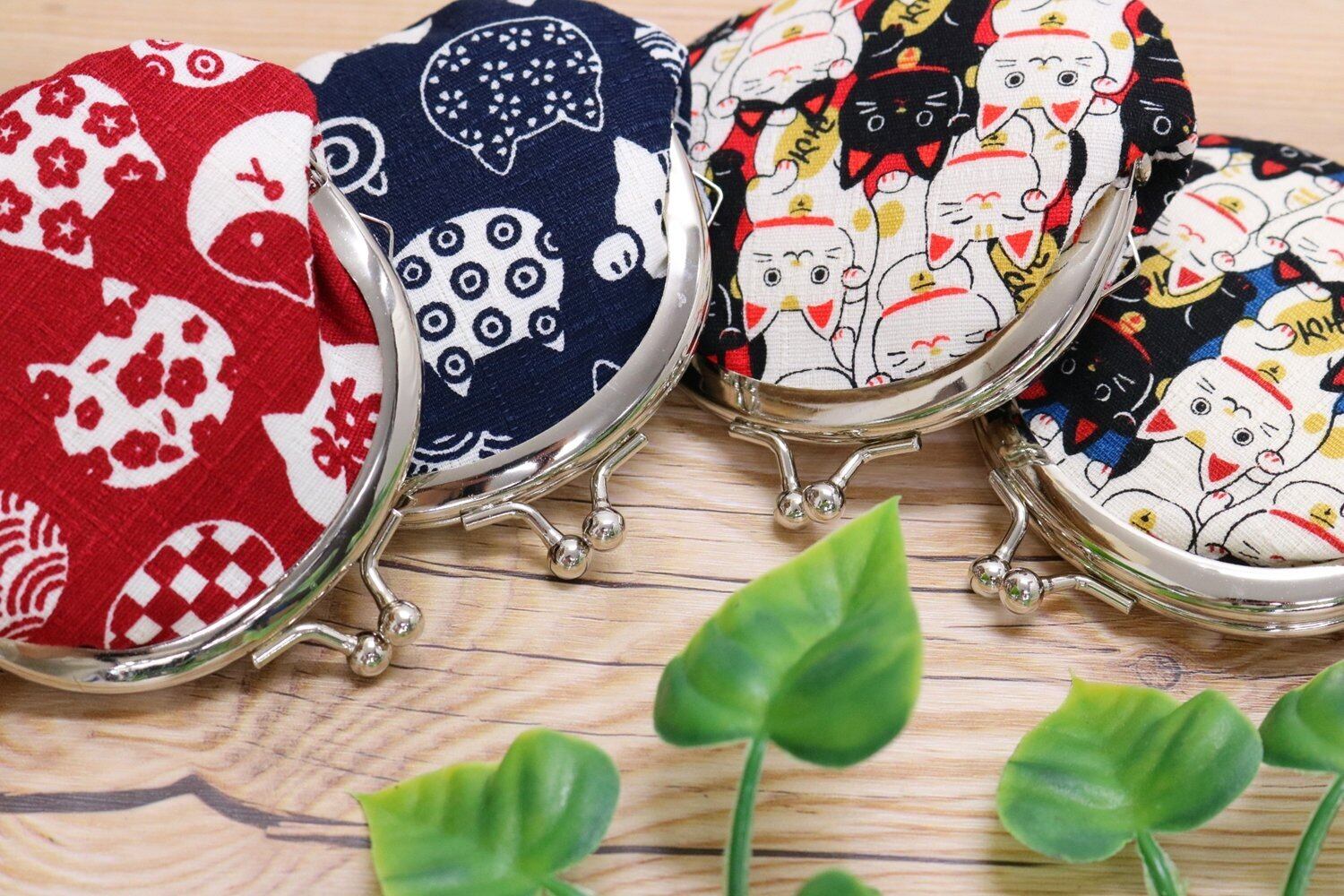 京佑 日本製 がま口 財布 小銭 入れ コイン ケース にゃんこもん 猫 ユニセックス(大人) 紺 2.6寸 9.5×8.5cm