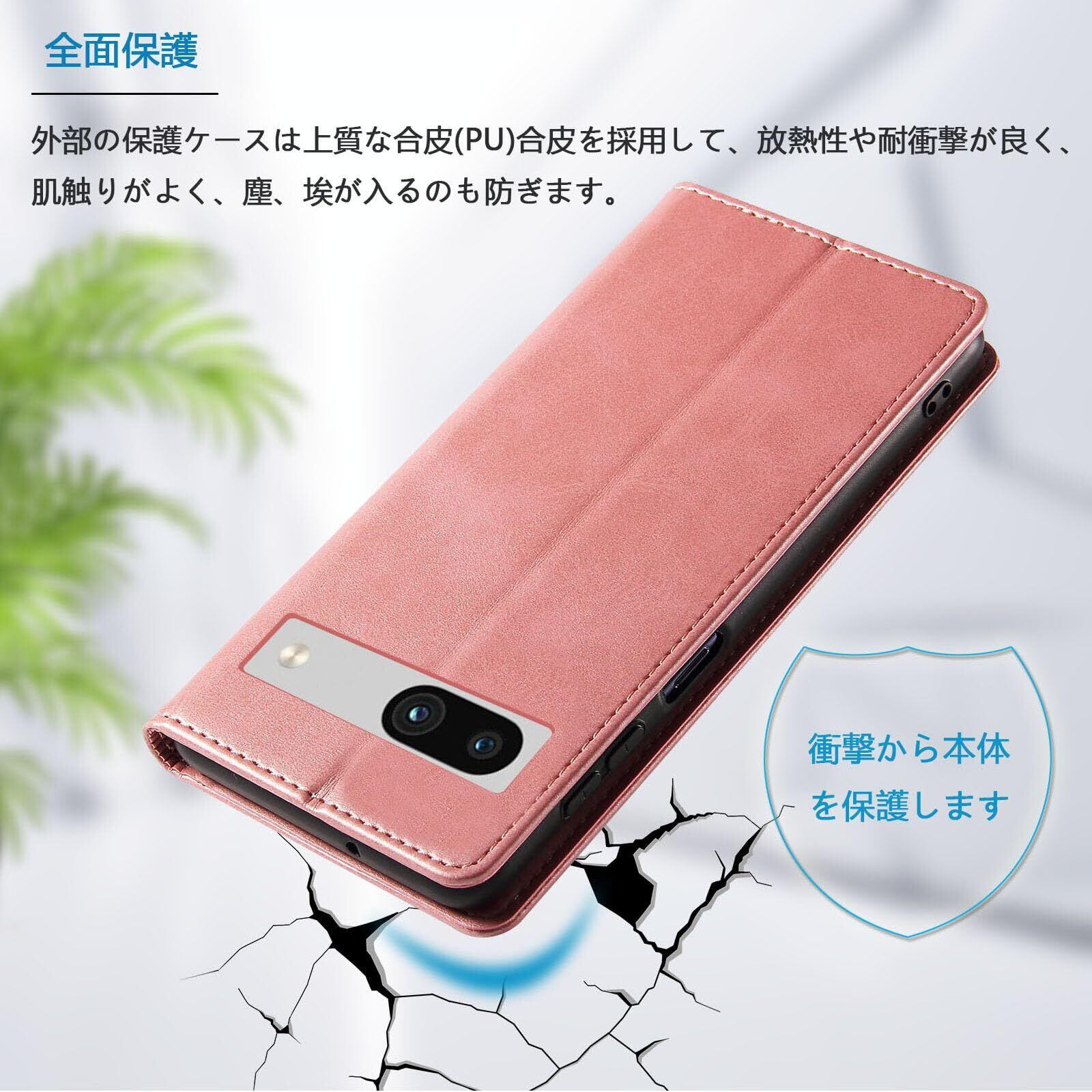 Pixel 7a ケース Google ピクセル 7a ケース スマホケース 手帳型 携帯カバー レザー 耐衝撃 軽量 着脱しやすい 放熱性 マグネット式 カード収納 スタンド機能 Google Pixel 7a ケース 対応 360度保護 PinLiSheng (Google Pixel 7a, バラゴールド)