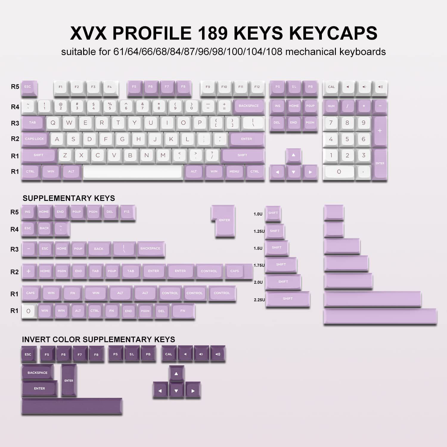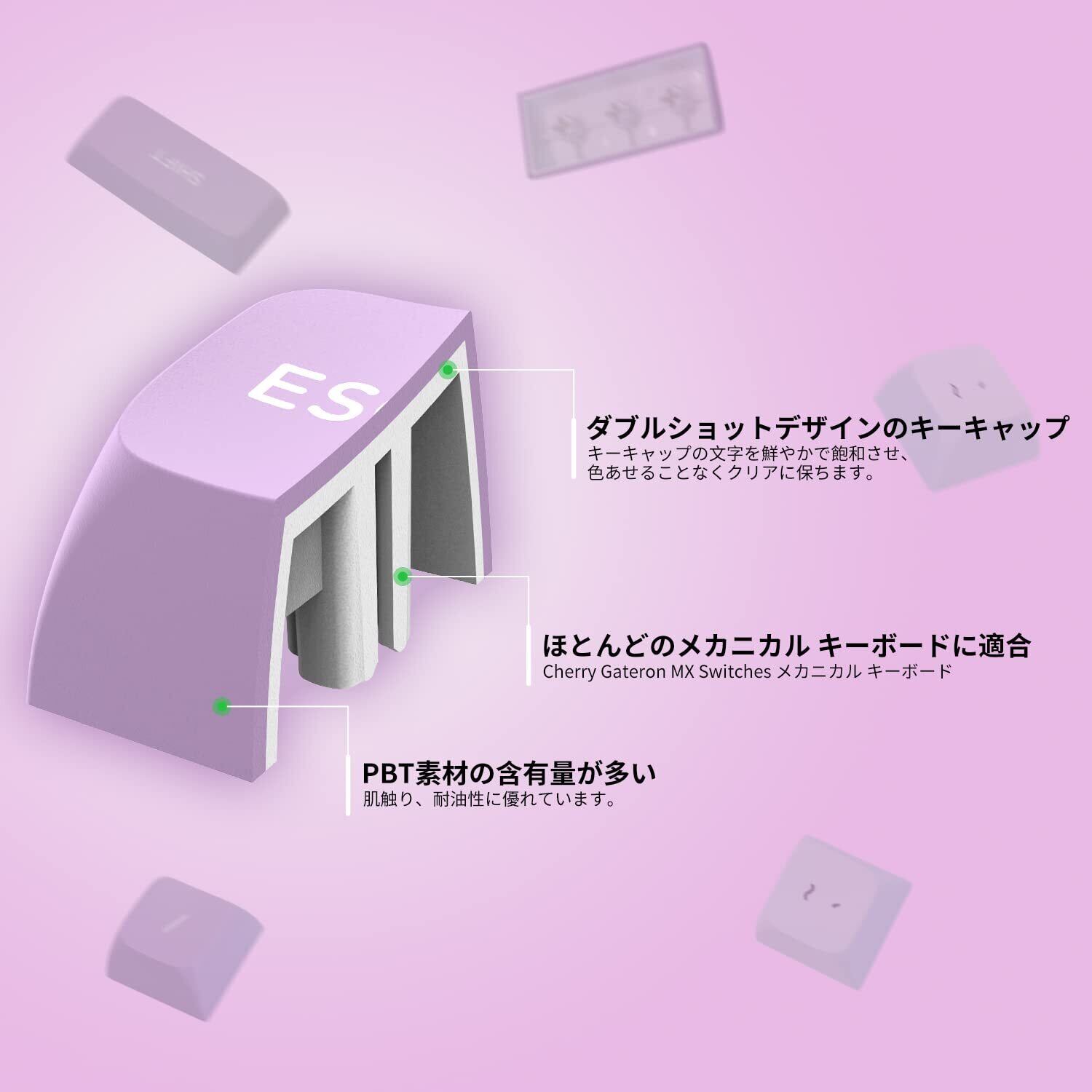 XVX キーキャップ 189キー ダブルショット PBT キーキャップ Cherry MX Gateronスイッチ 60%65%70%100%メカニカルキーボード用 XVXプロフィールキーキャップ (ホワイト/パープル)