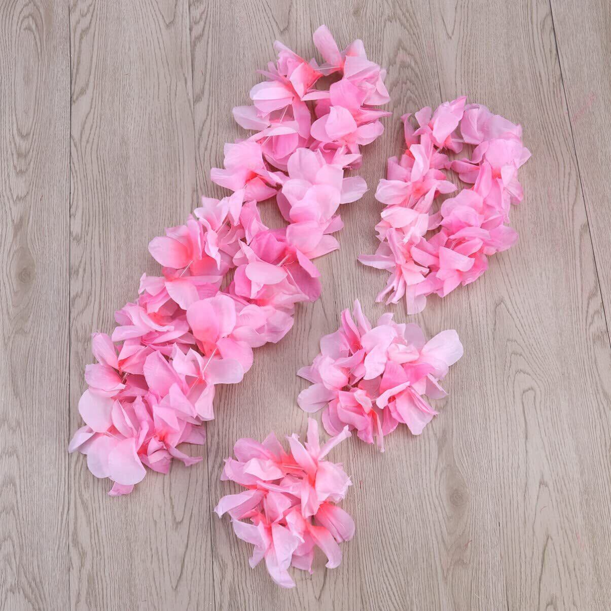 LIOOBO ハワイアンレイ ハワイ レイ 1セット計4pcs フラダンス レイ ハワイアン 飾り ハイビスカス レイ 花輪(ピンク)