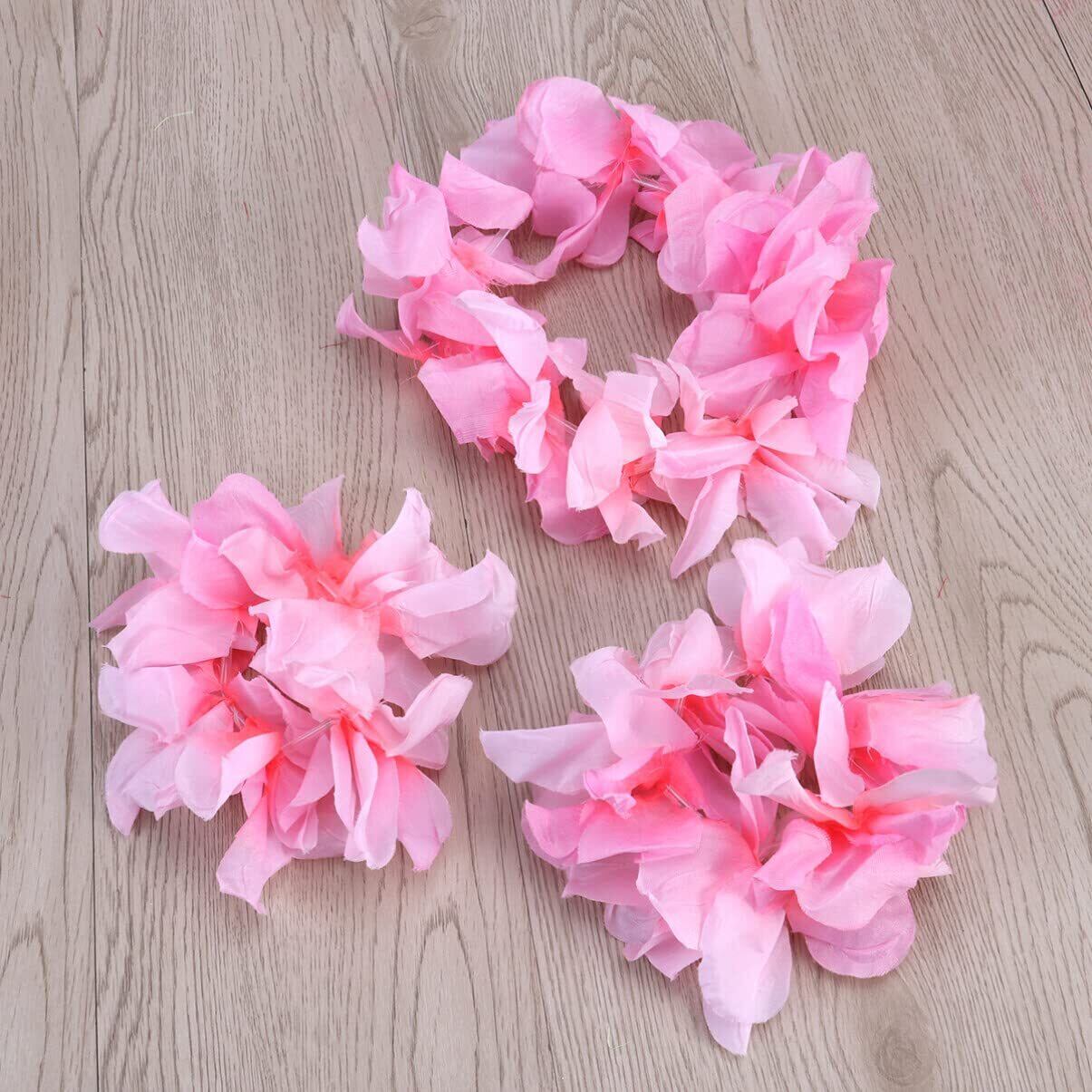 1 x4個セット/セットフリルシミュレートシルクフラワーハワイアンレイネックレスブレスレットフラワーリースヘッドバンドフローラルガーランドクラウンレディースガールズルアウパーティー用品の帽子(ピンク)