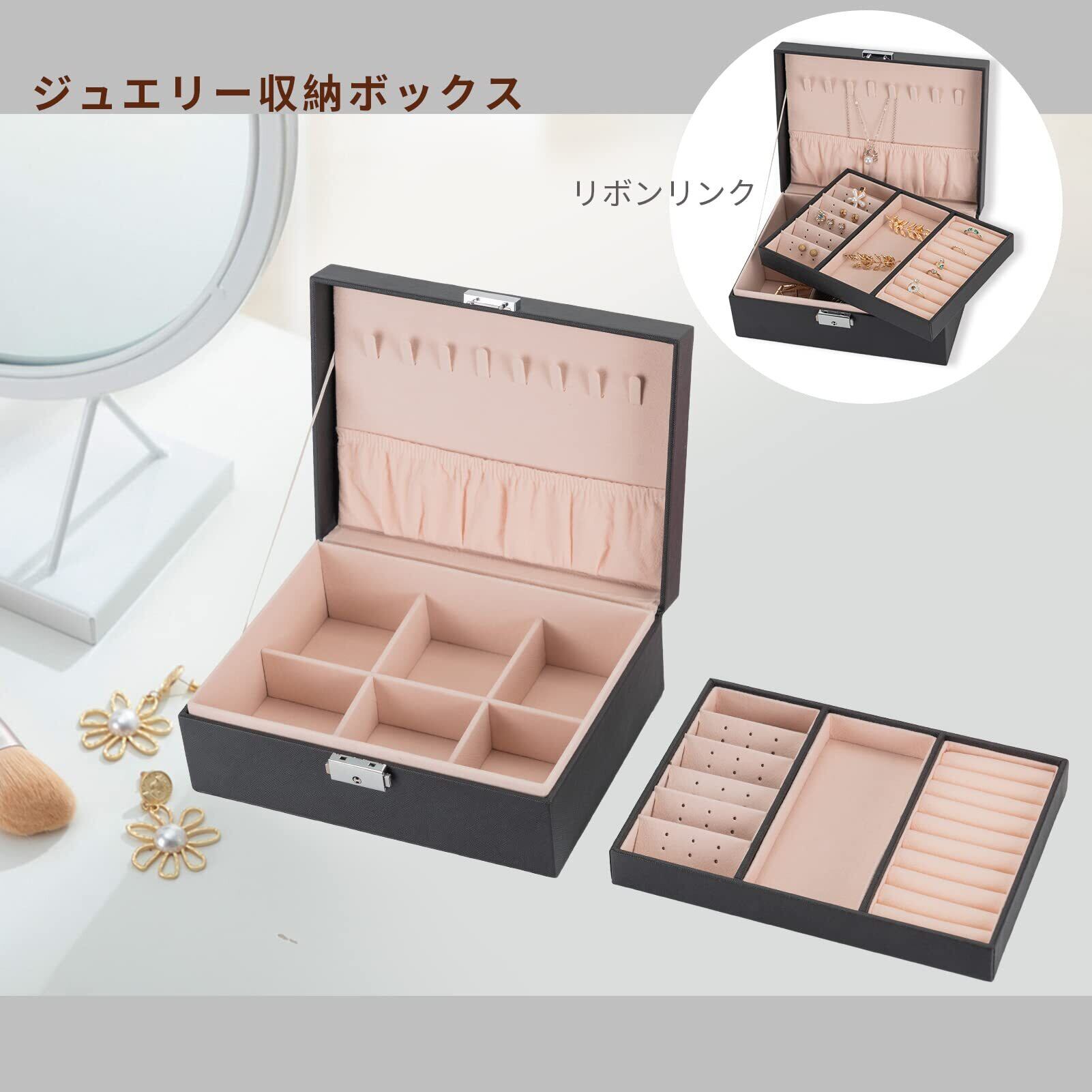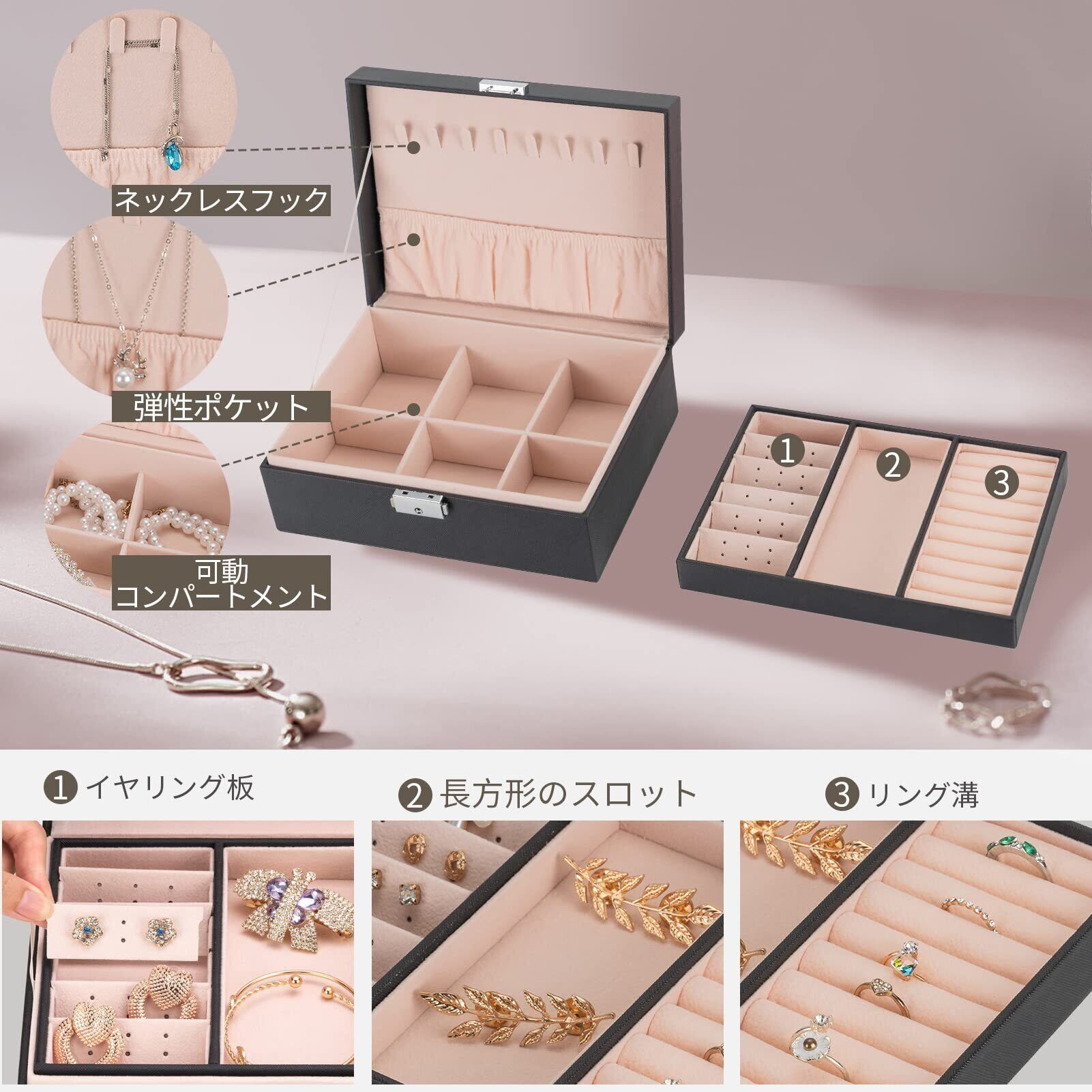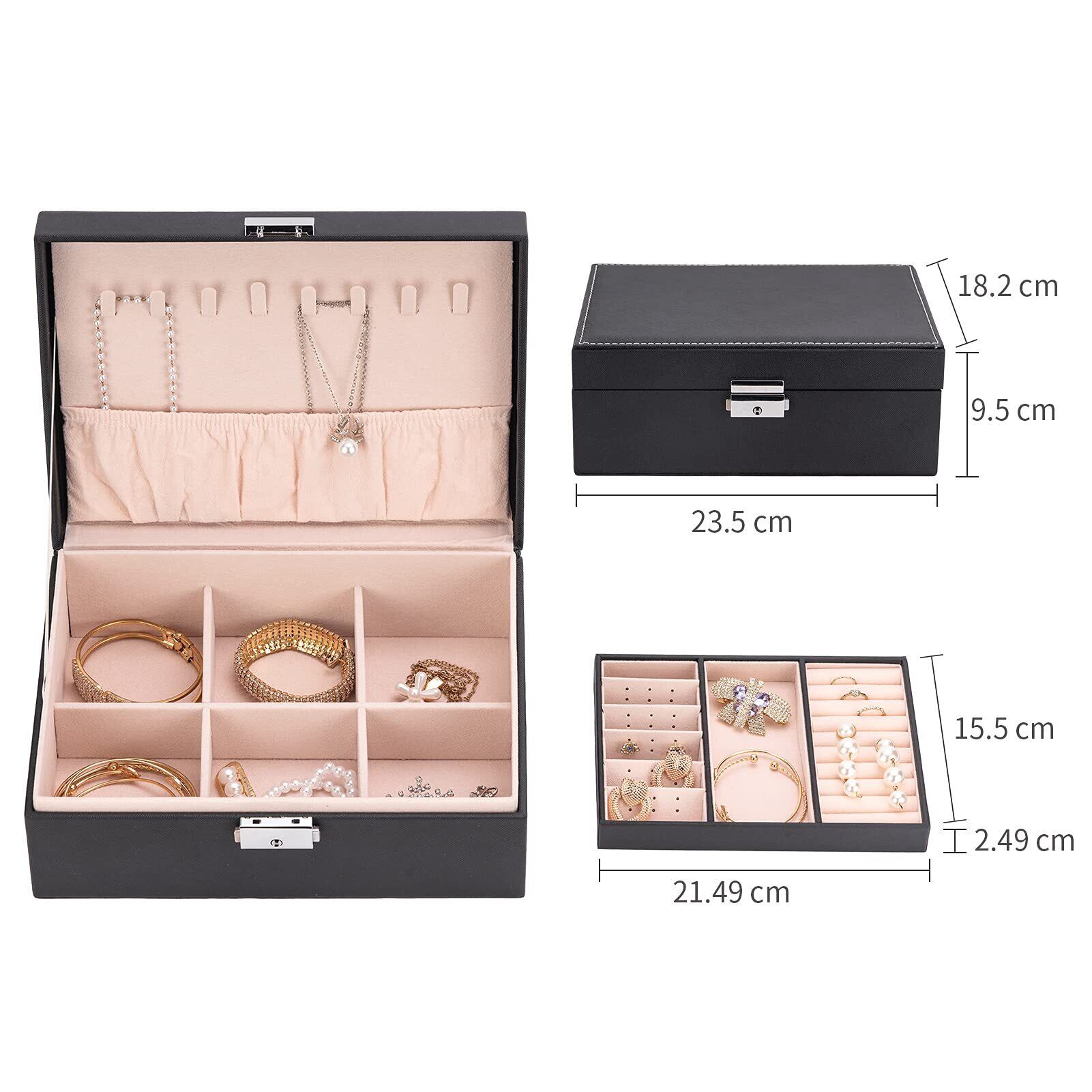 Smileshe ジュエリー ボックス 大容量 2段 ジュエリー収納 宝石箱 女性 2層ジュエリーケース アクセサリーケース アクセサリー 収納 オーガナイザー 分割 取り外しトレイ付き 小物入れ 着脱式の仕切り付き リング ピアス・指輪・イヤリング・ブレスレット・ネックレス収納 小物入れ 調整 鍵付き 贈り物 レディース 女の子用 (ブラック)