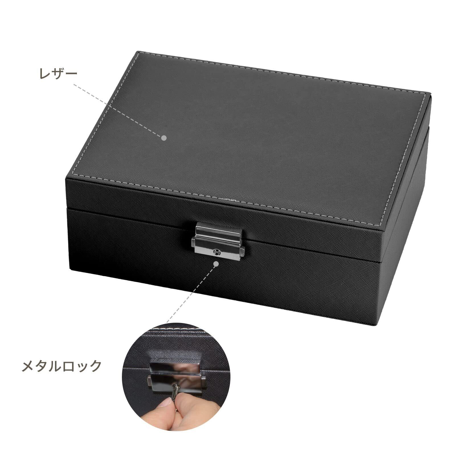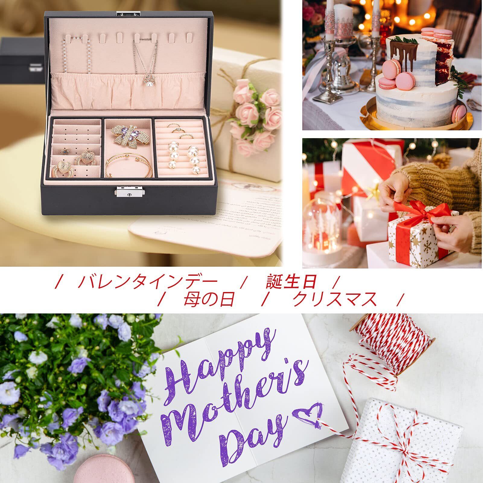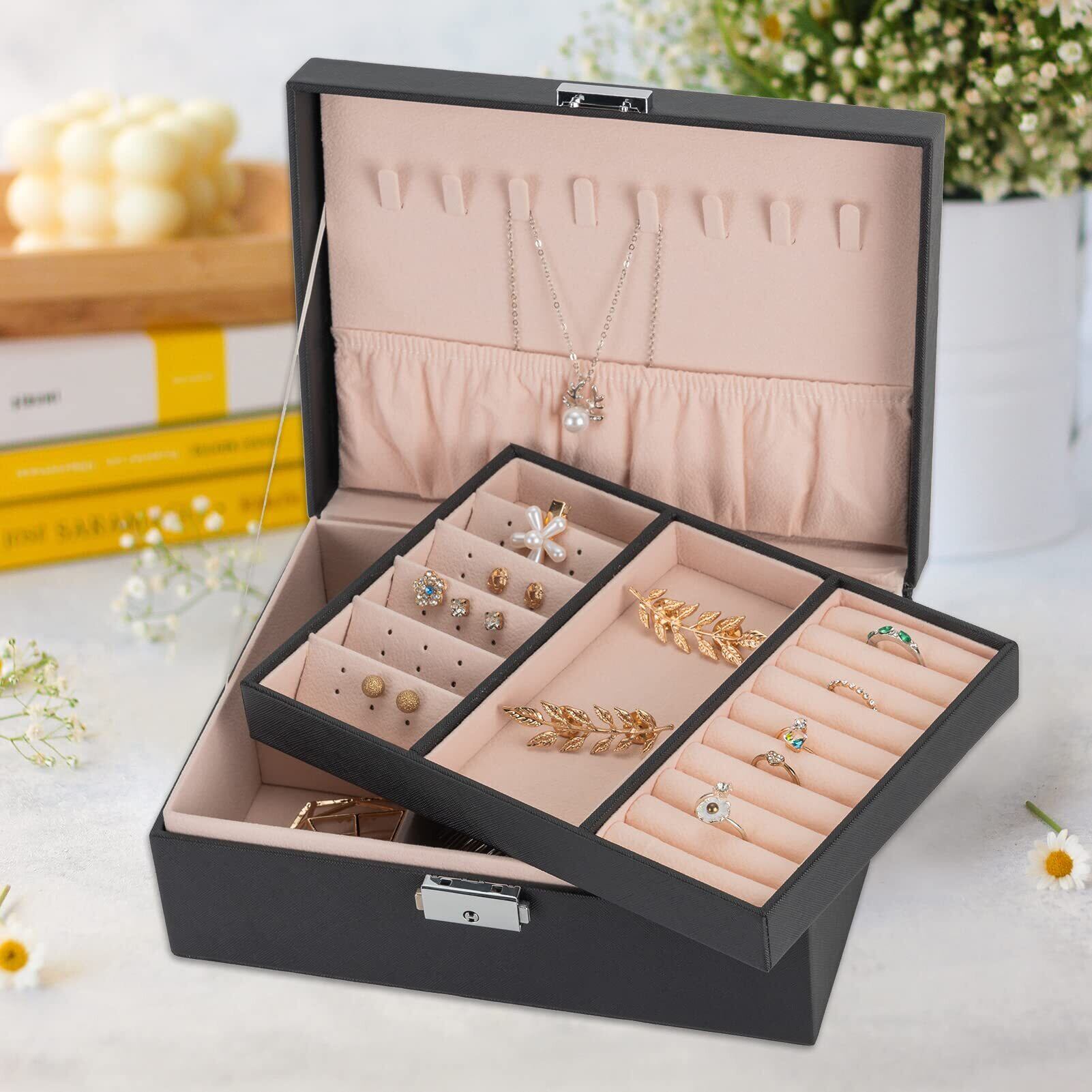 Smileshe ジュエリー ボックス 大容量 2段 ジュエリー収納 宝石箱 女性 2層ジュエリーケース アクセサリーケース アクセサリー 収納 オーガナイザー 分割 取り外しトレイ付き 小物入れ 着脱式の仕切り付き リング ピアス・指輪・イヤリング・ブレスレット・ネックレス収納 小物入れ 調整 鍵付き 贈り物 レディース 女の子用 (ブラック)