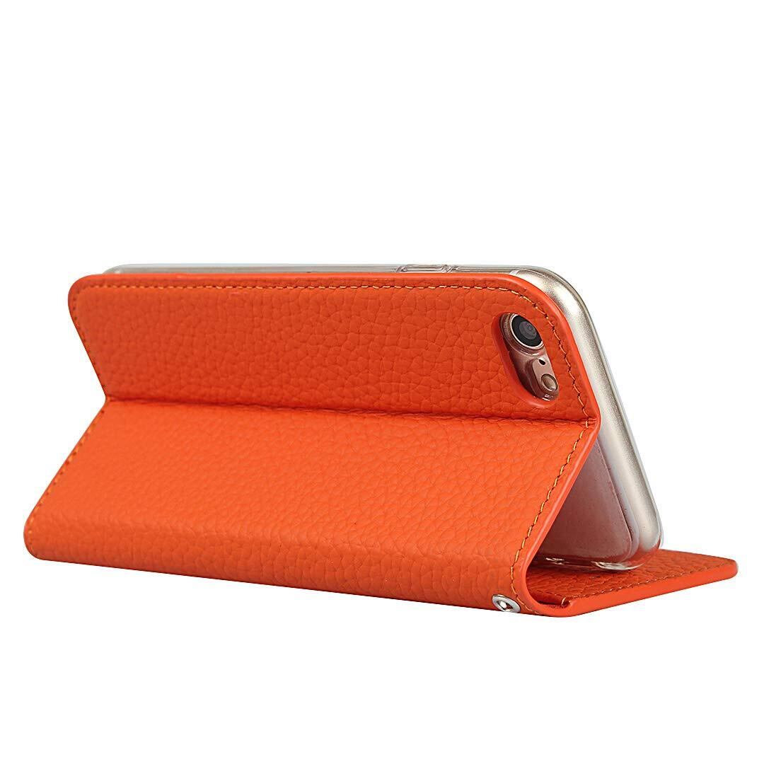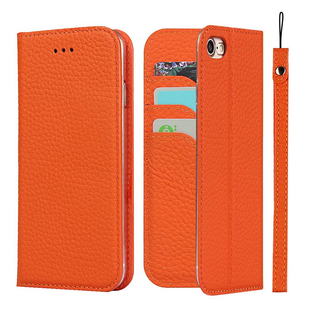 For iPhone SE (第3世代) 2022/ iPhone SE (第2世代) 2020 ケース手帳型 iPhone 7 ケース Pelanty 牛革製品 本革レザー iPhone 8 財布型カバー カード収納 スタンド機能 内蔵マグネット 手作り柔らかい アイフォンSE3/SE2/7/8 スマホケース ストラップ付 ヘッドフォンケーブル 耐衝撃 オレンジ