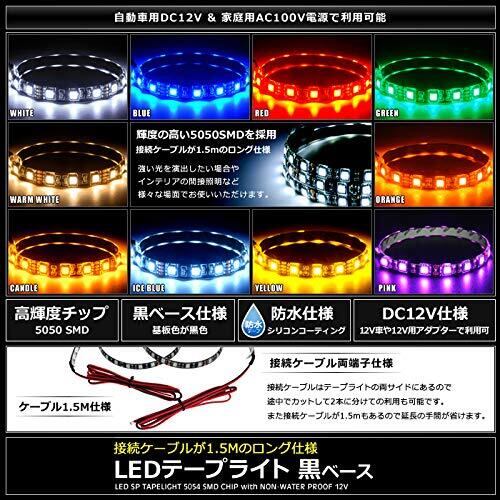 Kaito Denshi(海渡電子) [ケーブル1.5m] 12V 両端子 防水 LEDテープライト 3チップ 黒ベース 90cm 発光色:電球色