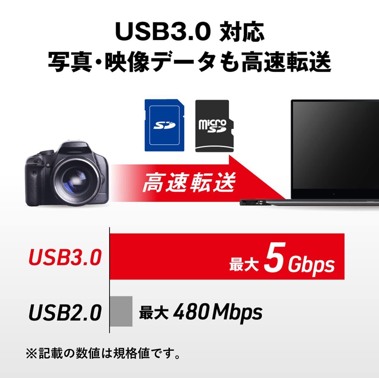 ■最大通信速度 USB 3.2(Gen 1)/3.1(Gen 1)/3.0:最大5Gbps(規格値)、 USB 2.0:最大480Mbps(規格値)、 USB 1.1:最大12Mbps(規格値)