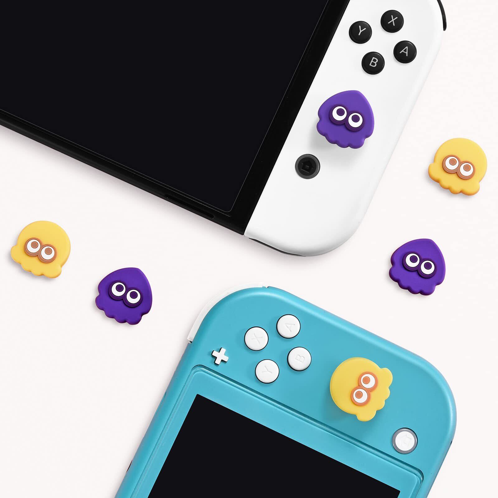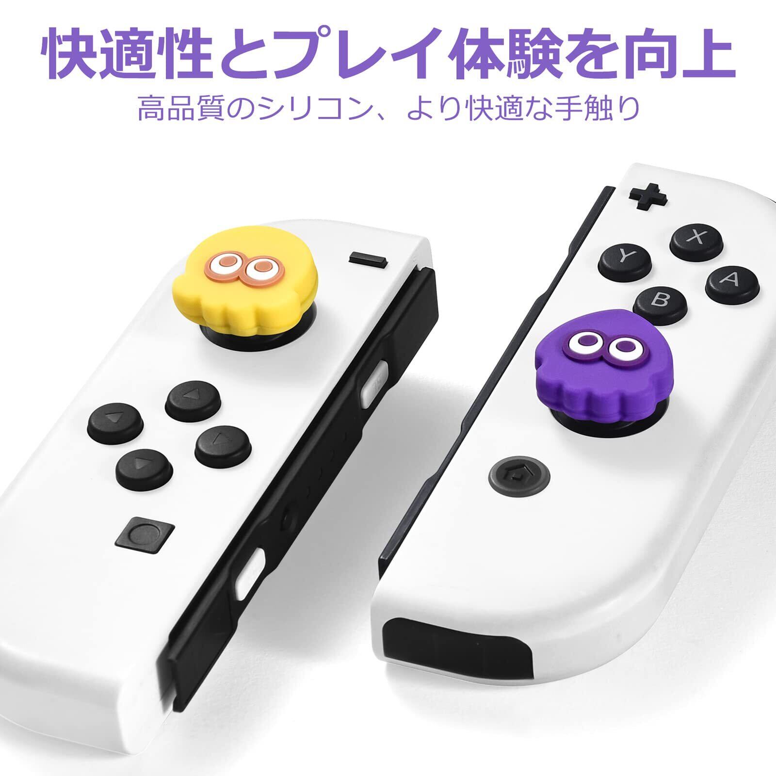 FUNLAB switch アナログスティックカバー switch有機elモデル対応 ジョイスティック スプラ 保護カバー joy-con対応 (4枚入れ) シリコン コントロール キャップ 滑り止め Switch/Switch lite/Switch oled対応 黄色、紫色