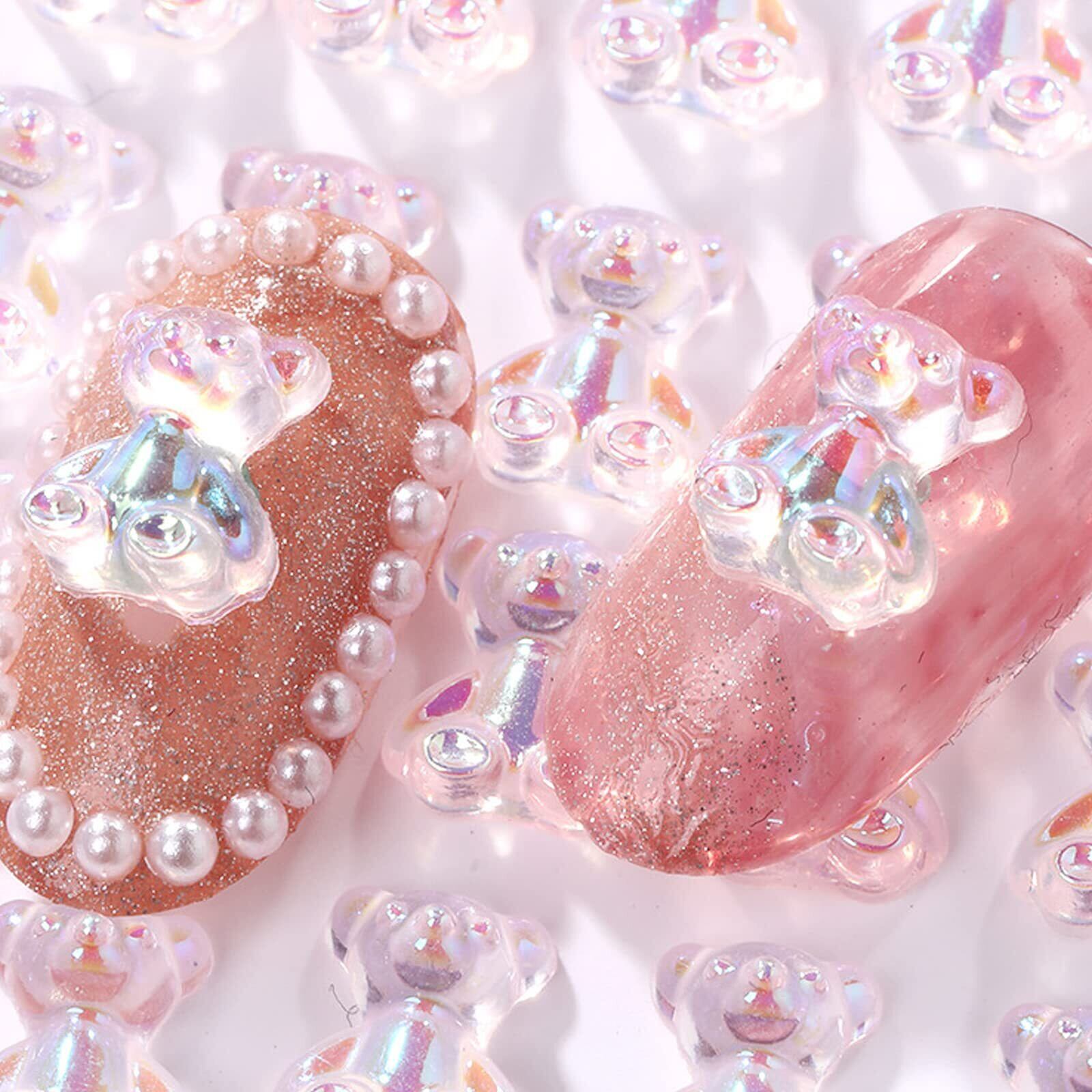 【ネイルパーツセット】夏ネイルにピッタリのクリア感があるネイルパーツです。リボン、クマ、ハートなどさまざまなデザインがあり、オーロラカラーなので、光の角度によって煌きが変わります。