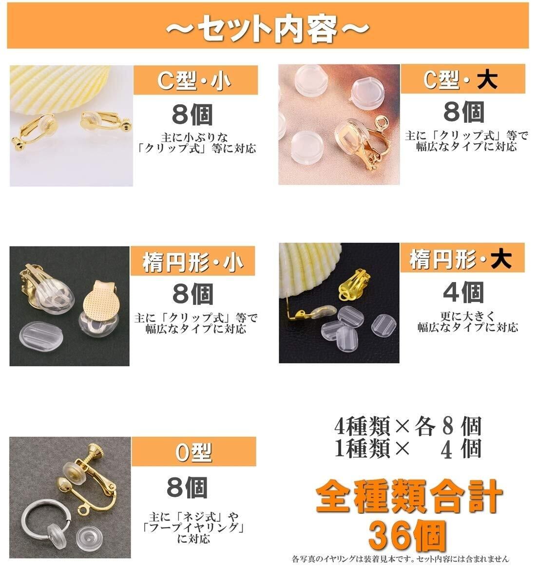 イヤリングカバー(シリコン製)5種類36個/一番大きい「楕円型・大」のみが4個入り、そのほかは8個入りです