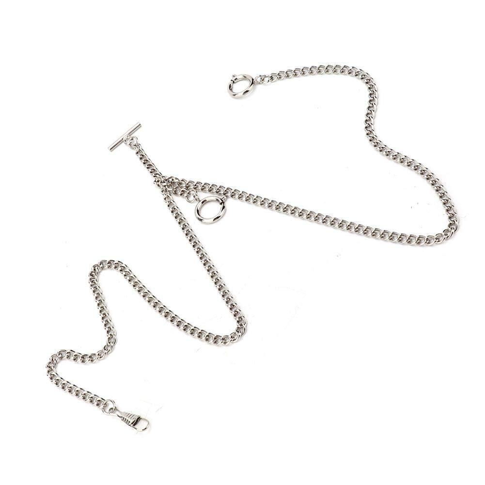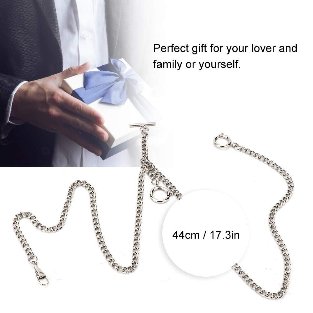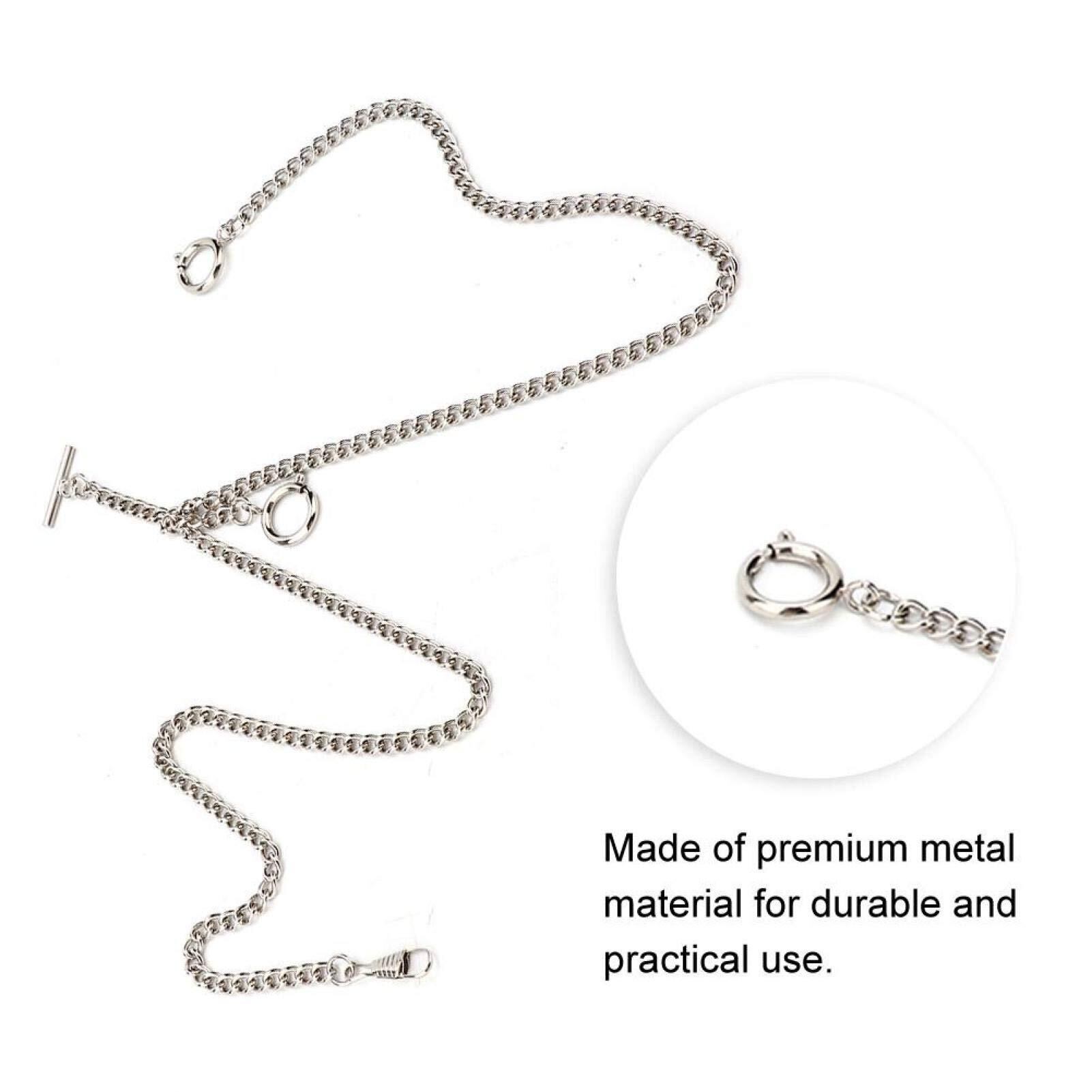 xuuyuu.. 懐中時計用チェーン 引き輪 44cm ポケットウォッチチェーン 金属素材 贈り物 レトロ ポケットデコレーション(シルバー)