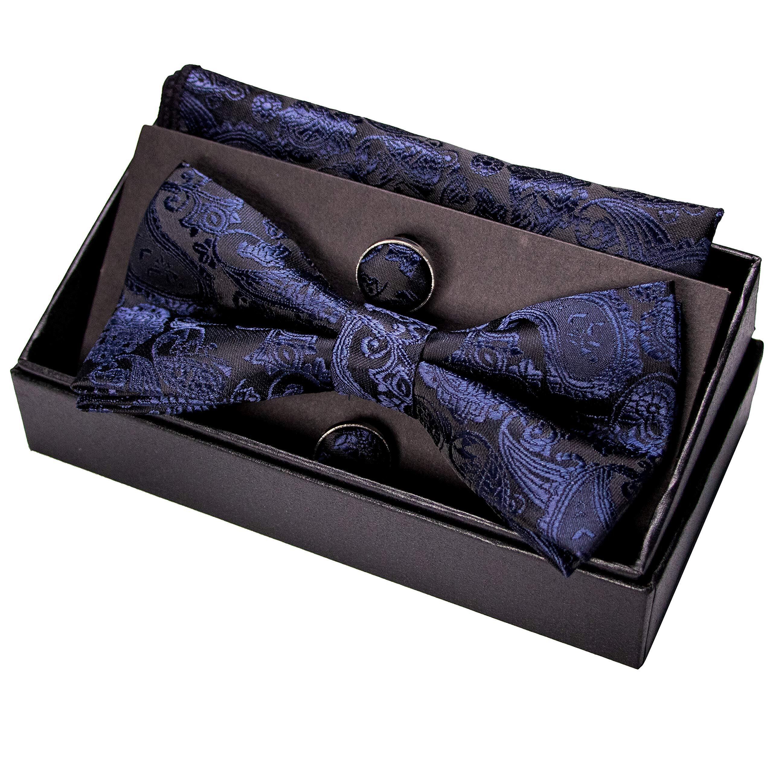 [JEMYGINS] 「ジェミギンズ メンズ ペイズリー柄 蝶ネクタイ カフス ボタン ハンカチ セット フォーマル ビジネス 結婚式 プレゼント
