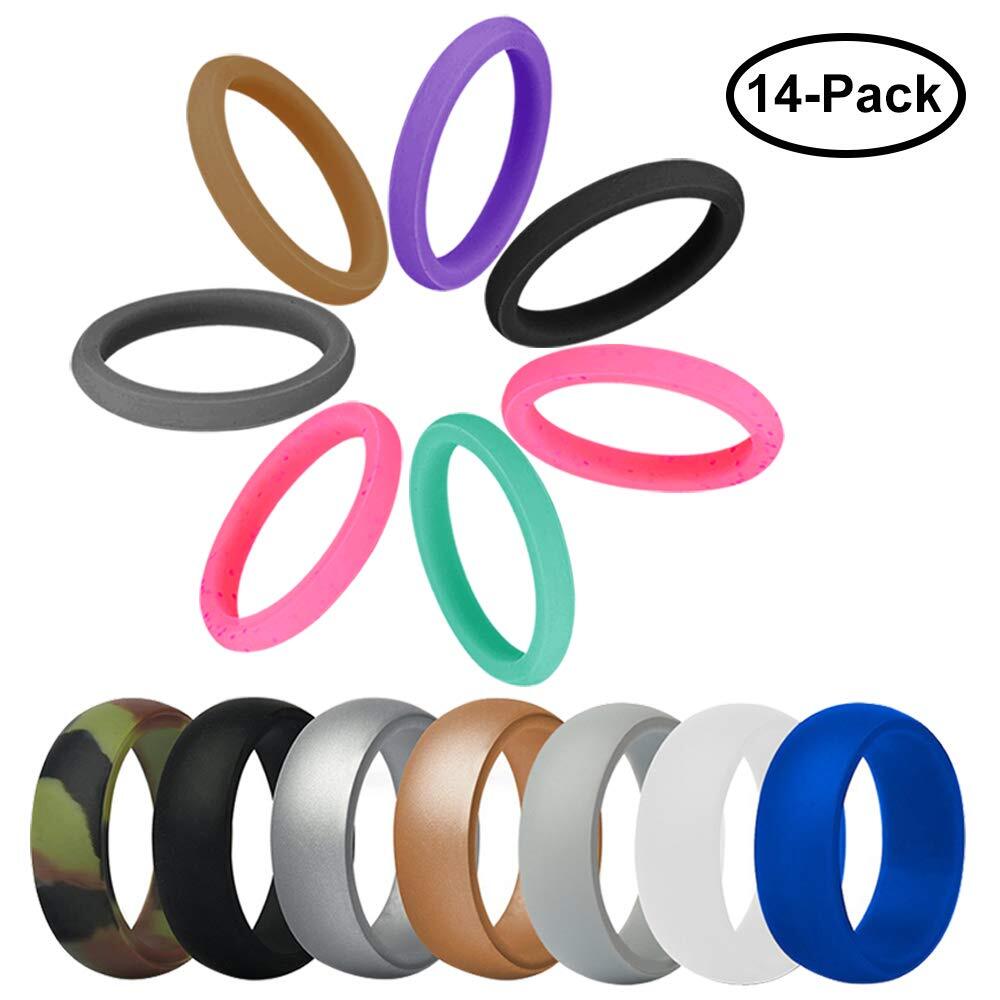 14個のシリコンリング:異なる色のスタイリッシュなリング14個付き。 ソフトで人気のスタイルで、スポーツでも快適で安全です。 お友達へのユニークで素敵なギフト。