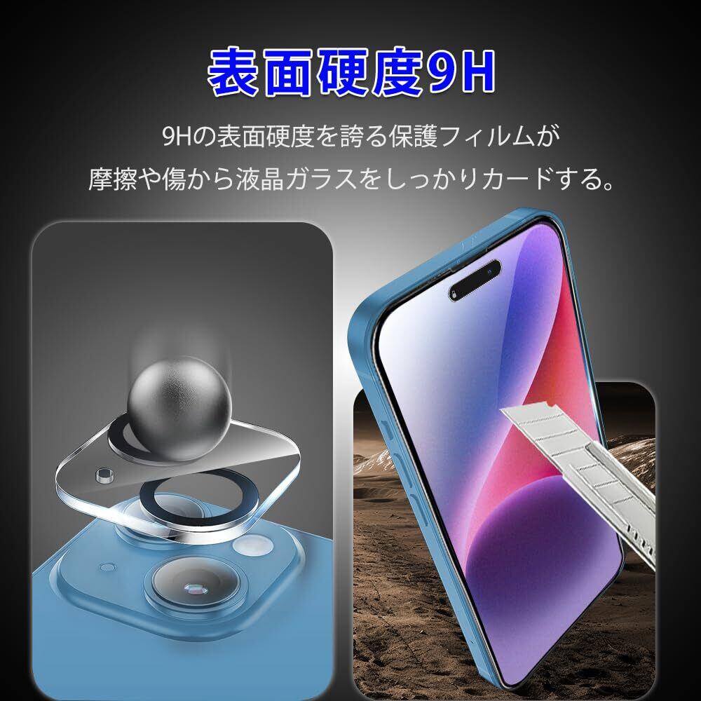 【対応機種&包装内容】iPhone 15 /iPhone 14 専用ガラスフィルム。強化ガラスフィルム【1枚】+カメラフィルム【1枚】+位置決め用のガイド枠【1個】+日本語取扱説明書+貼り付けキット。最先端技術の3Dラウンドエッジ加工により、美しい形状にぴったりフィット、曲面の完全カバーを実現します。位置決め用のガイド枠が付属していますので、ガラスフィルムをスクリーンに揃えるのが簡単になります。画面に置くだけでキレイに貼れ、気泡が入りづらく、初心者でも一発で簡単に貼ることができます。※ご注意:貼り付けの際に、万が一少しの気泡や浮きが出てきた場合は、布を指に巻いて少しずつ押し出せば抜けます。もし、それでも解決できなかったら、フィルムを端から気泡や浮きのところまで慎重に爪で押し上げ、引き続きゆっくりと下ろし貼り付けても、解決できます。※iPhone 14 は背面レンズの大きさが異なるため、レンズフィルムは装着できませんのでご注意ください。