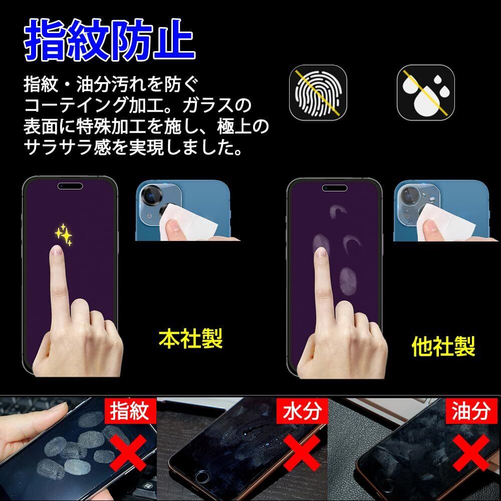 【快適な指滑り&指紋防止加工】iPhone 15 専用フィルム表層高密度素材から本体との密着で、より速く、より滑らかなタッチ感を実現。指の滑りは何も貼っていないくらい良く、流水みたいな流れで高速文字入力も支え、指から心までその抜群な使い心地を感じられます。特殊コーティング処理で、指紋の付着を軽減、日常生活での汚れや油脂などもティッシュなどで軽く拭くだけでとれます。元々の画質が損なわれません。
