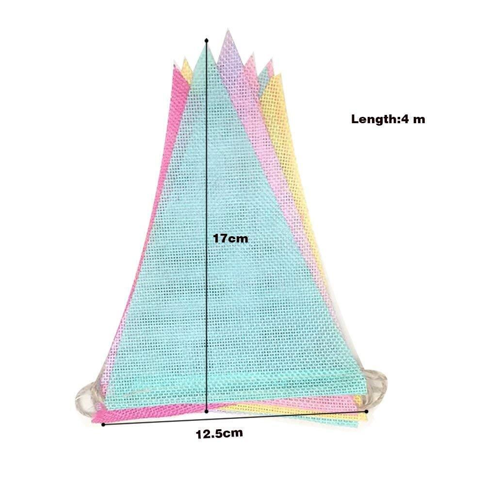 1本は約4メートルの長さがあり、12枚三角旗含めます;2本セットなので、共に8メートルで、24枚三角旗含めて、楽に部屋やパーティーなどに飾りましょう。