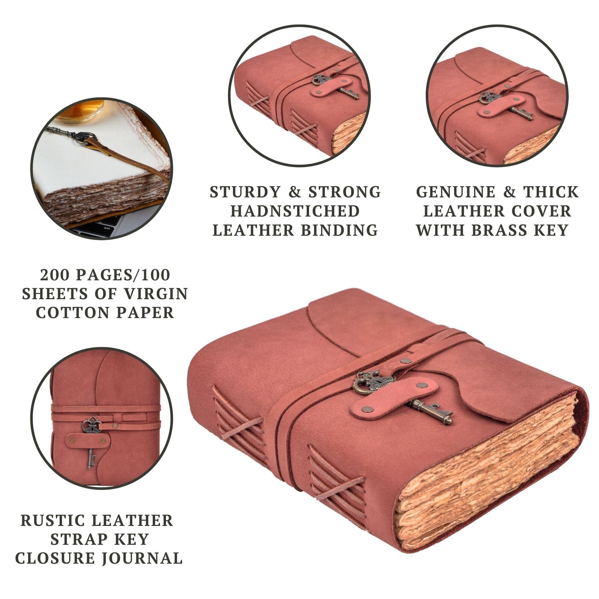 VINTAGE LEATHER ジャーナル: この古いジャーナルには、レザーラップアラウンドに美しいキーが付いています。 このレザー ノートブックは、女性やティーンの女の子へのユニークなギフトになります。 このブランク ジャーナルは、トラベル ジャーナル、デイリー ジャーナル、感謝ジャーナル、妊娠ジャーナル、聖書ジャーナル、祈りジャーナル、結婚式のゲストブックの代替品などとして使用できます。