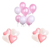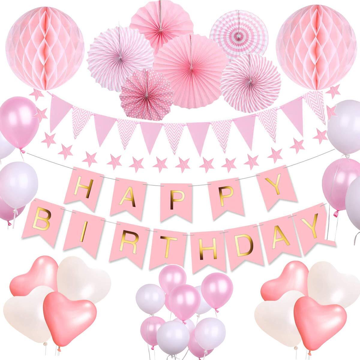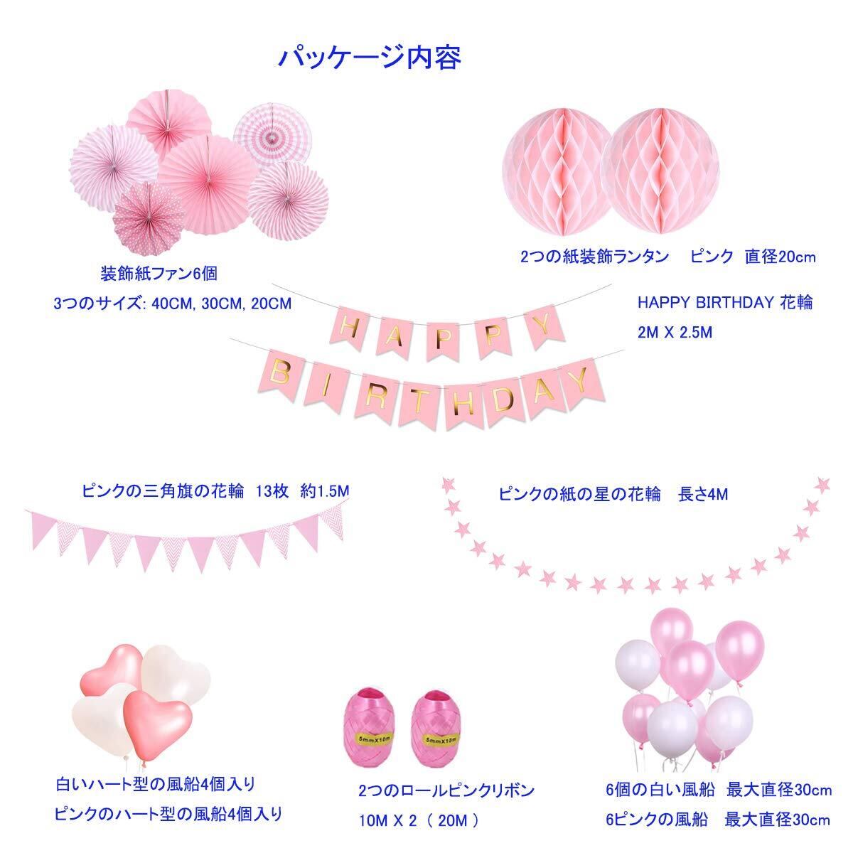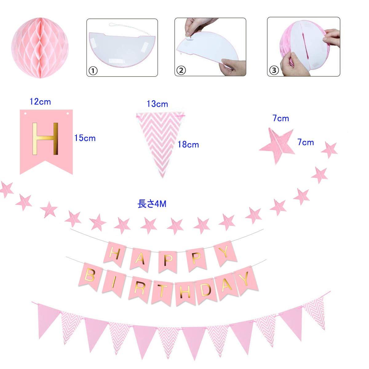 【セット内容】ピンクの風船×6、白い風船×6、白い風船×4、ピンクのハート形の風船×4、ハッピー・イン・ガーランド(ピンク)×1個、スターガーランド(ピンク)×1、フラッグガーランド(ピンク) ×1枚、ハニカムボール(20 CM)×2枚、紙扇×6枚、リボン×2枚
