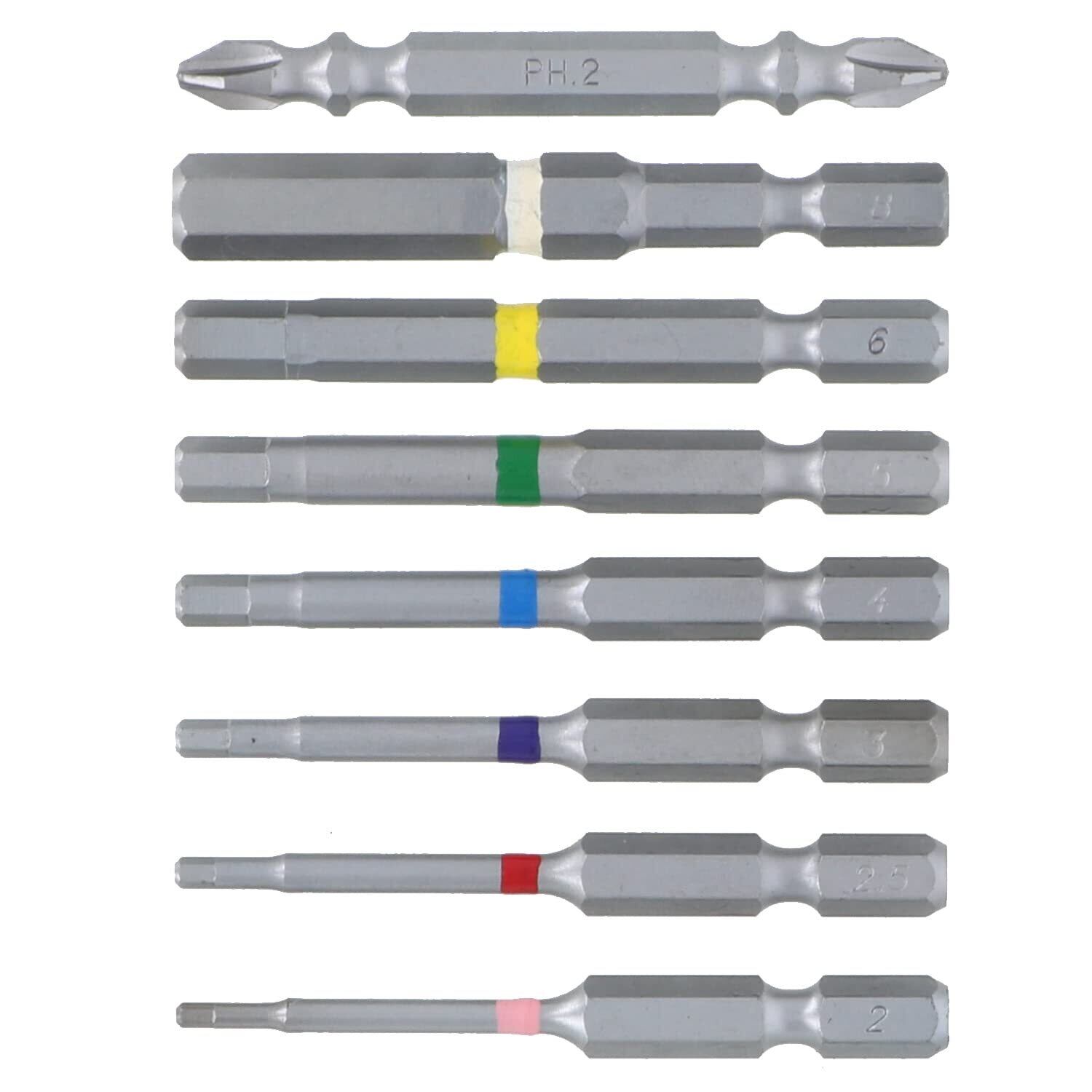 セット内容:六角ビット2mm/2.5mm/3mm/4mm/5mm/6mm/8mm/+No.2