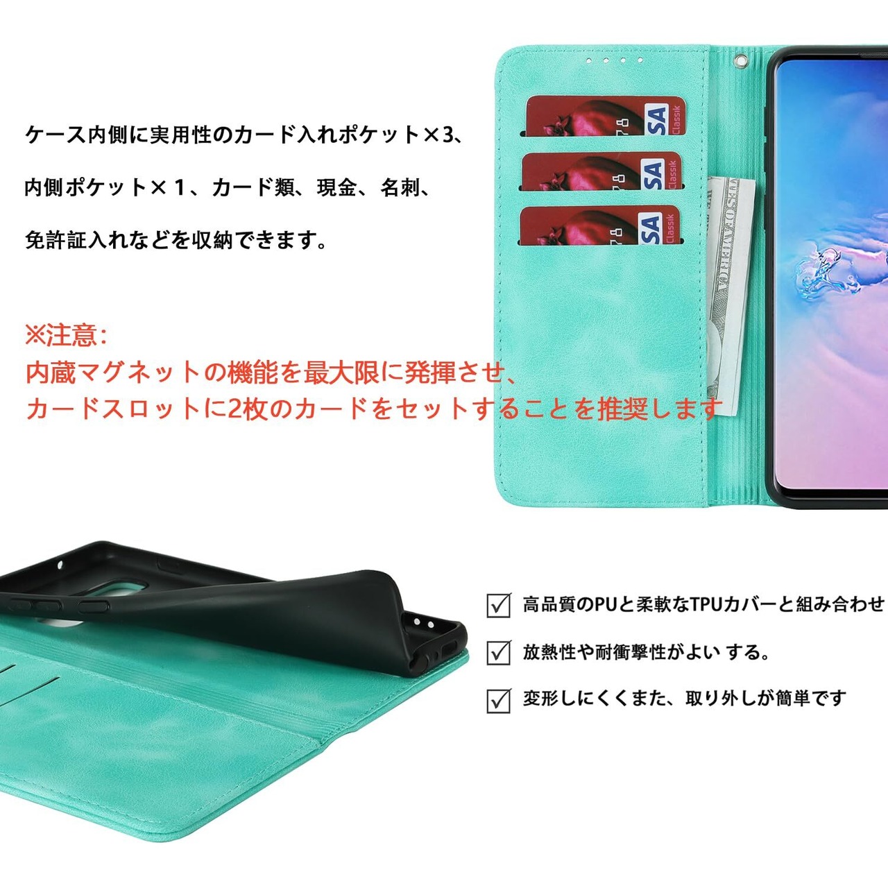 Havaya Galaxy S10 ケース ギャラクシーs10 ケース SC03L ケース 手帳型 au SCV41 ドコモ docomo SC-03L ストラップ カバー 耐衝撃 ドコモ サムスン samsung カード収納 SoftBank レザー スエードの質感-ミントグリーン