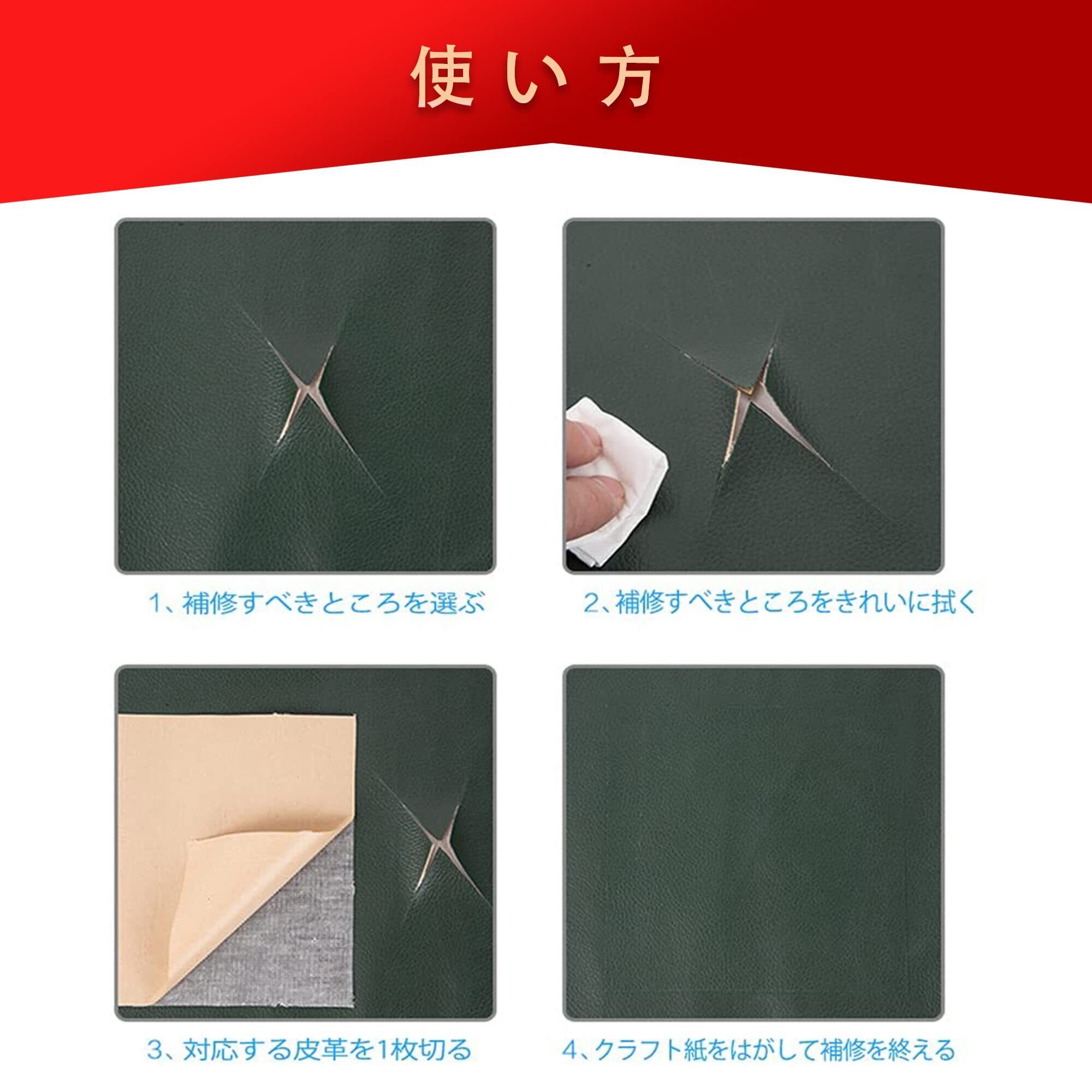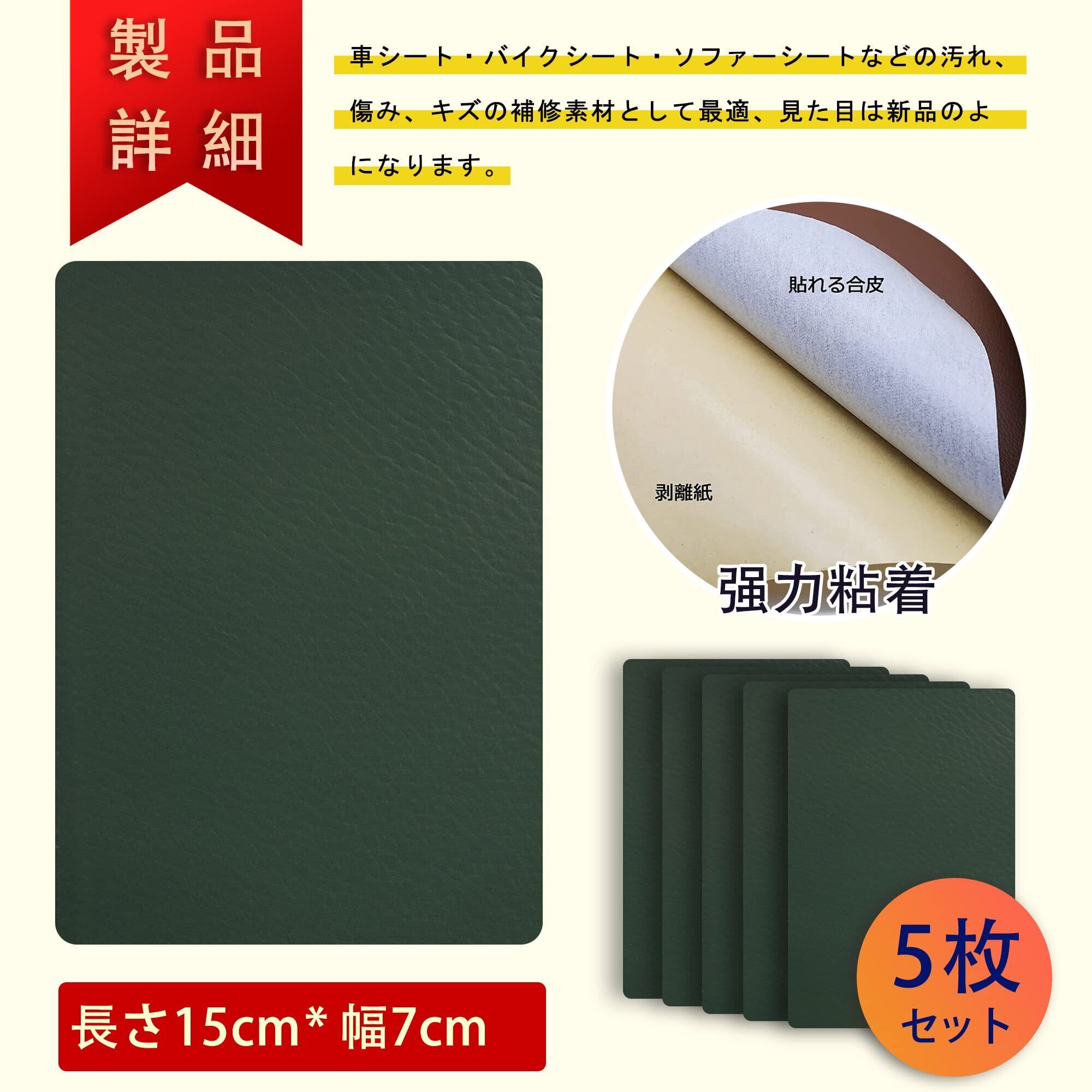 合皮補修シート7cm*15cm 5枚 粘着シート12色が選択できるソファー補修テープ 防水 柔らかめ 耐久 カバン 椅子 バイク シート財布家具革補修 (7cm*15cm, 濃いグリーン)