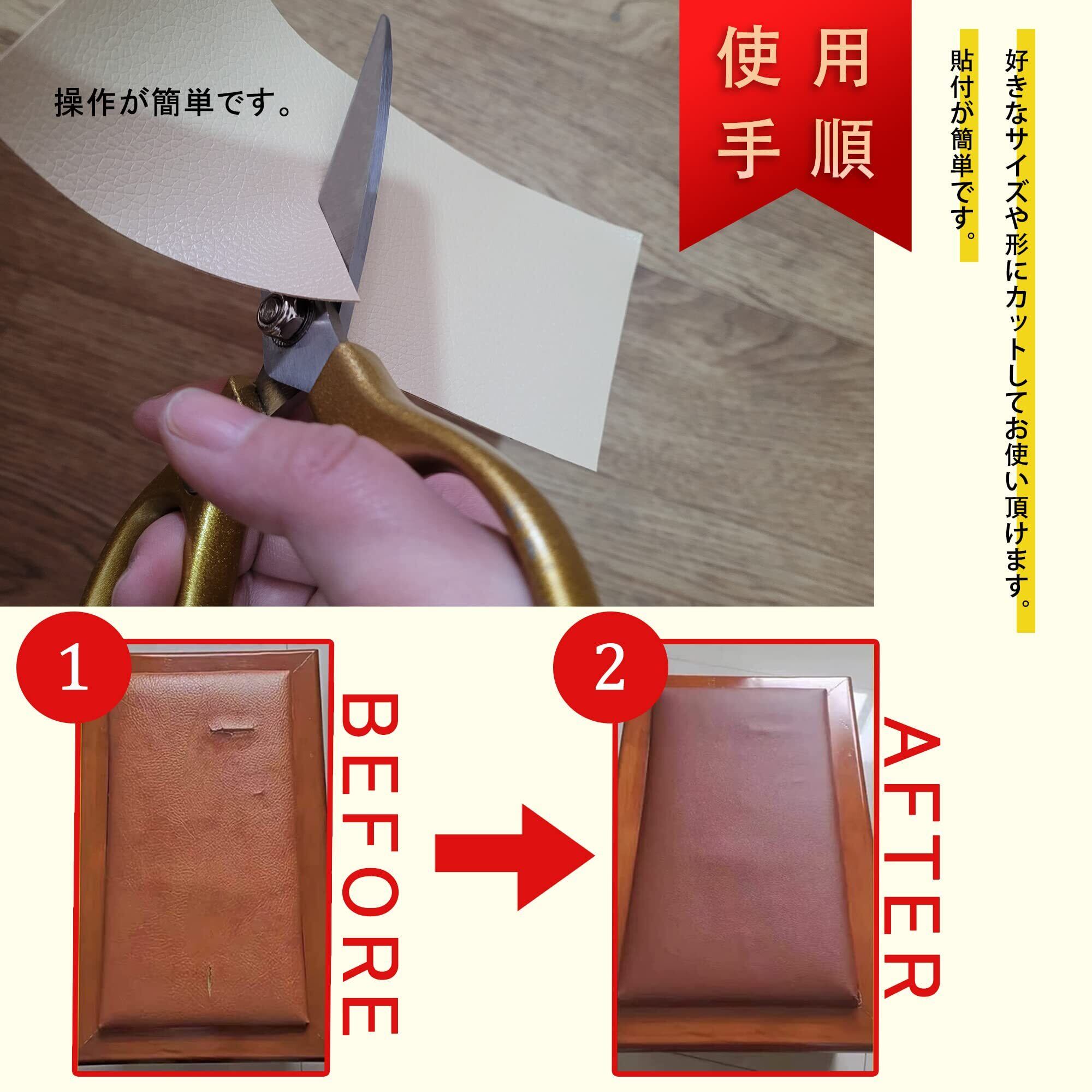 車の座席に限らずカバン、ソファーなどの合皮製品の補修、張替に便利なPUレザーシートです。貼るだけで補修でき、テクニックが必要ではない補修キットです。