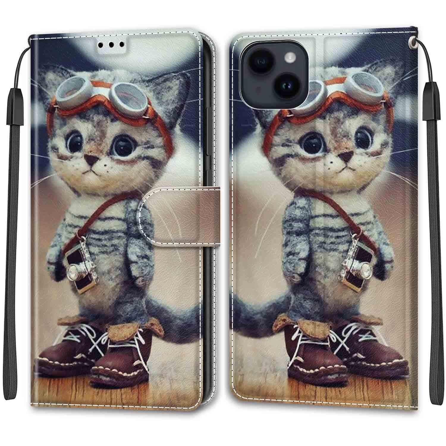 KENHONER iPhone 15 Plus ケース 手帳型 iPhone15 Plus 手帳型ケース iPhone 15 Plus カバー アイフォン15 プラス ケース 手帳型 カード収納 手首ストラップ付き 保護力 衝撃吸収 磁気バックル 横置きスタンド機能 ワイヤレス充電対応 アイホン 15 プラス 6.7inch (スーツ猫)
