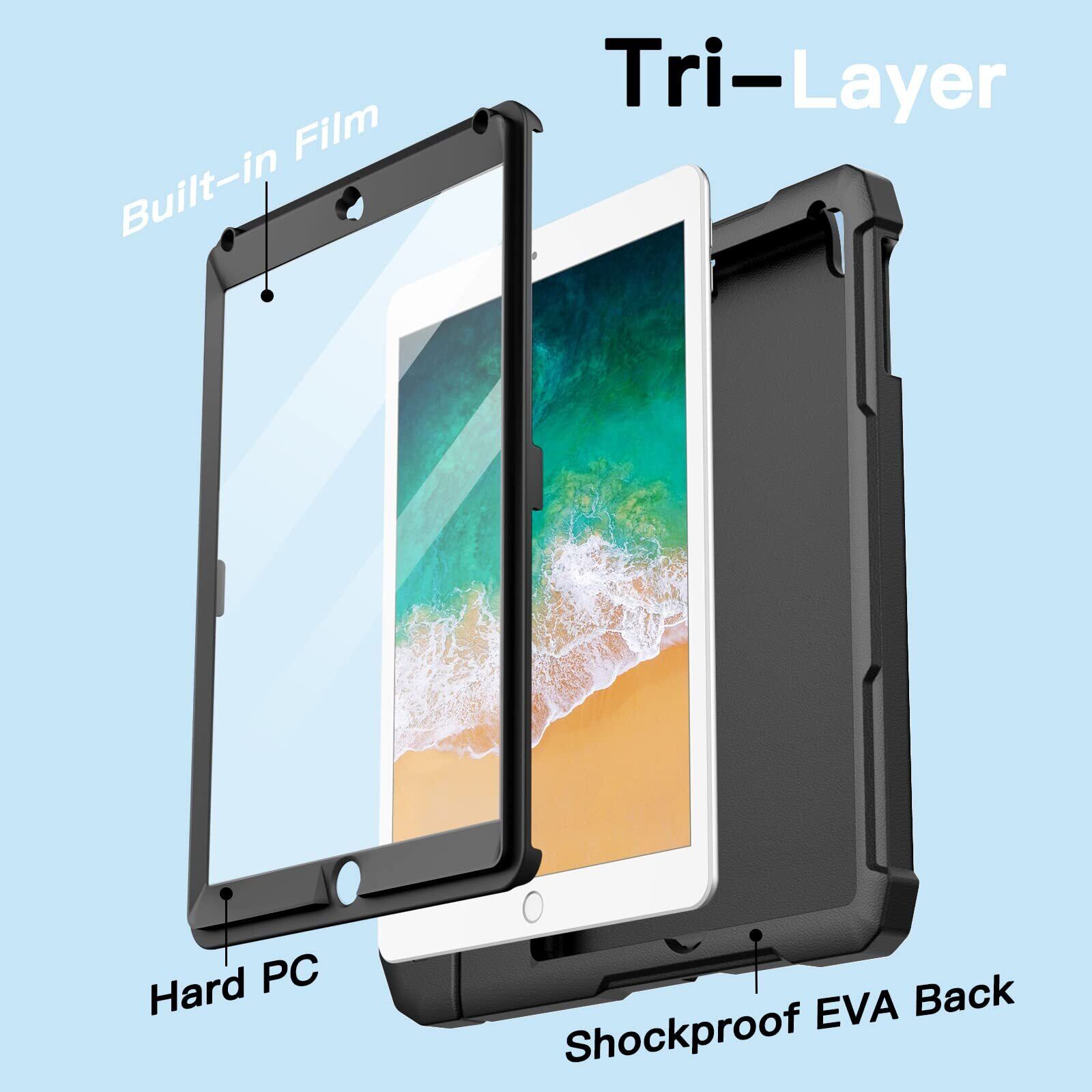 JEDirect 子供用 iPad 9.7インチ ケース (第6/5世代、2018/2017モデル) 液晶保護フィルム付き 耐衝撃 フルボディハンドルスタンド タブレット保護カバー (ブラック)