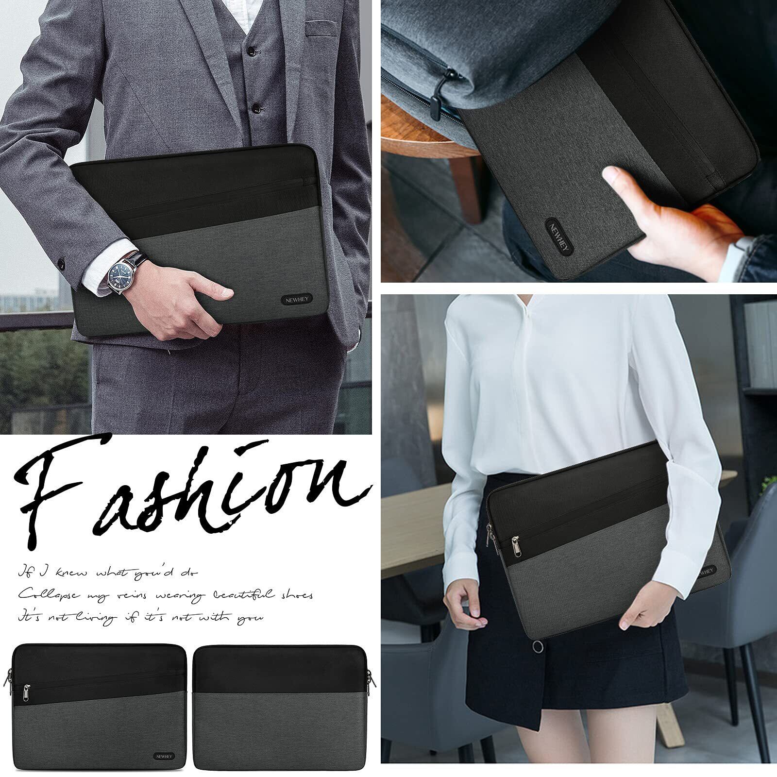 NEWHEY 超強保護 耐衝撃 ノートパソコンケース PCインナーバッグ インナーケース 14インチ MacBook Air 2018-2020/MacBook Pro 15 2016-2019/ThinkPad X1 Carbon 4/Microsoft Surface Pro/ThinkPad/Asus/HP対応 ラップトップ ノートPCバッグ 撥水加工 ダックグレー+ブラック
