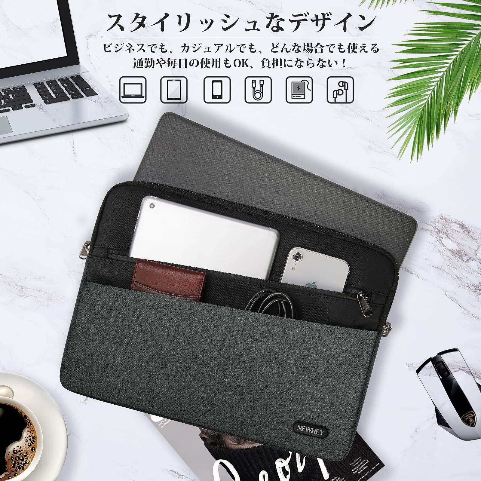「撥水性・便利感」ノートパソコンケースの表面は撥水性に優れ、耐久性と高級感のある素材を使用して、雨の日にも安心です。防水ファスナーを採用して、どこからでも開けやすくて、パソコンを出し入れしやすいです。