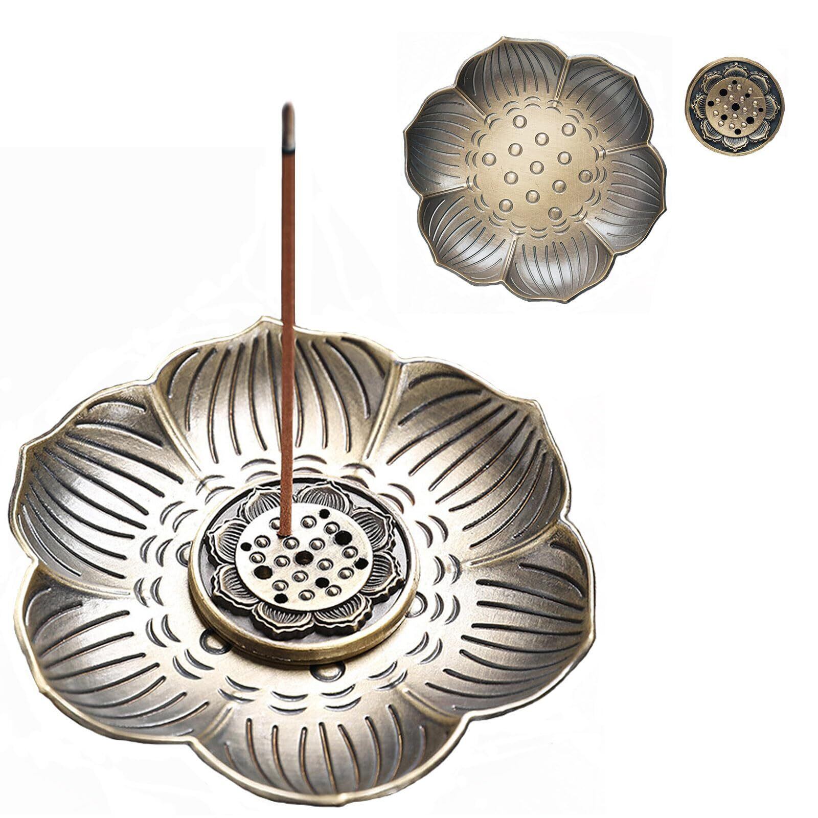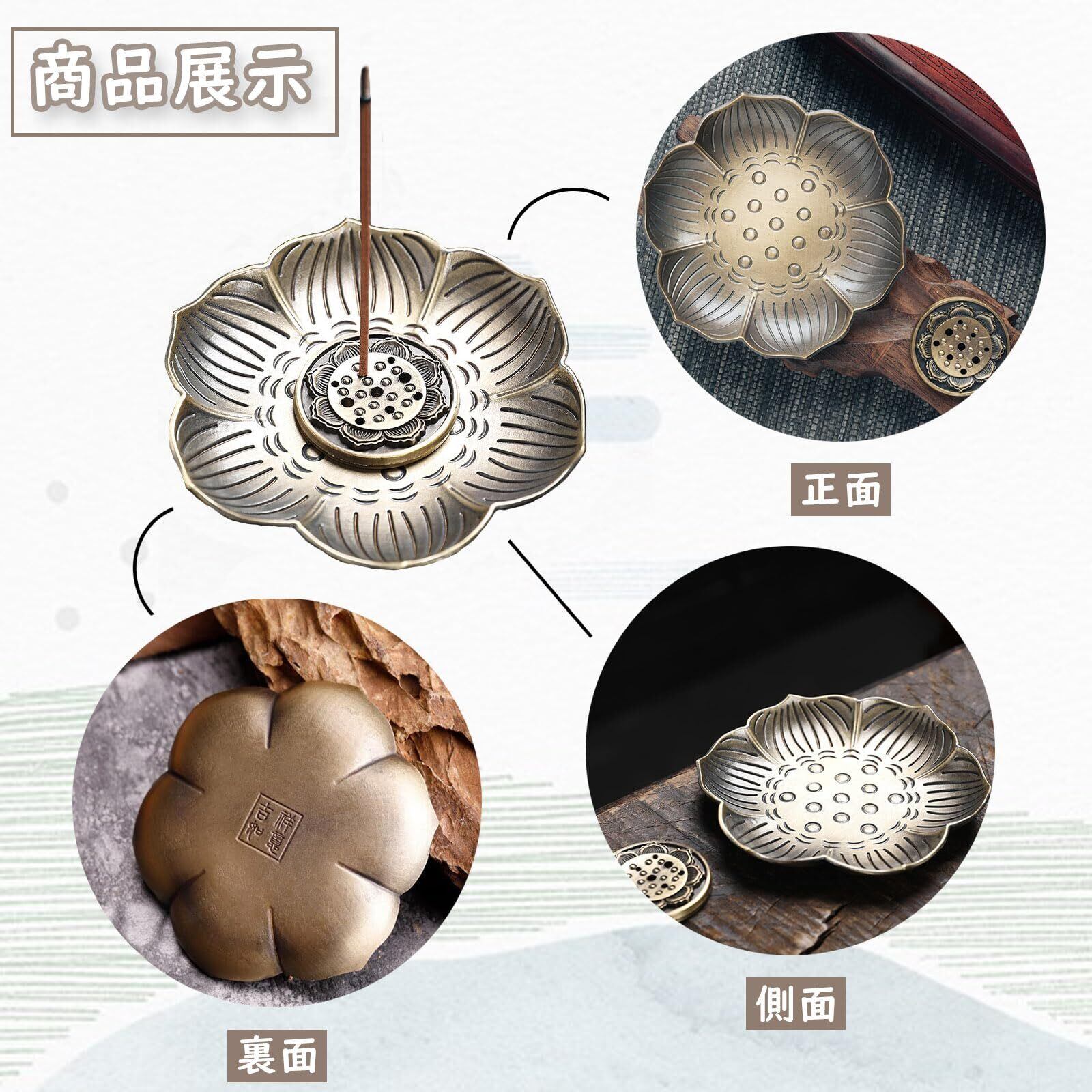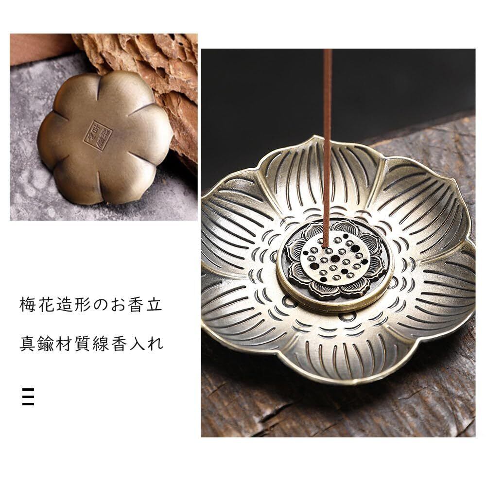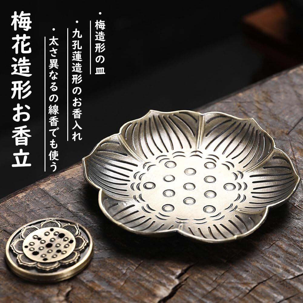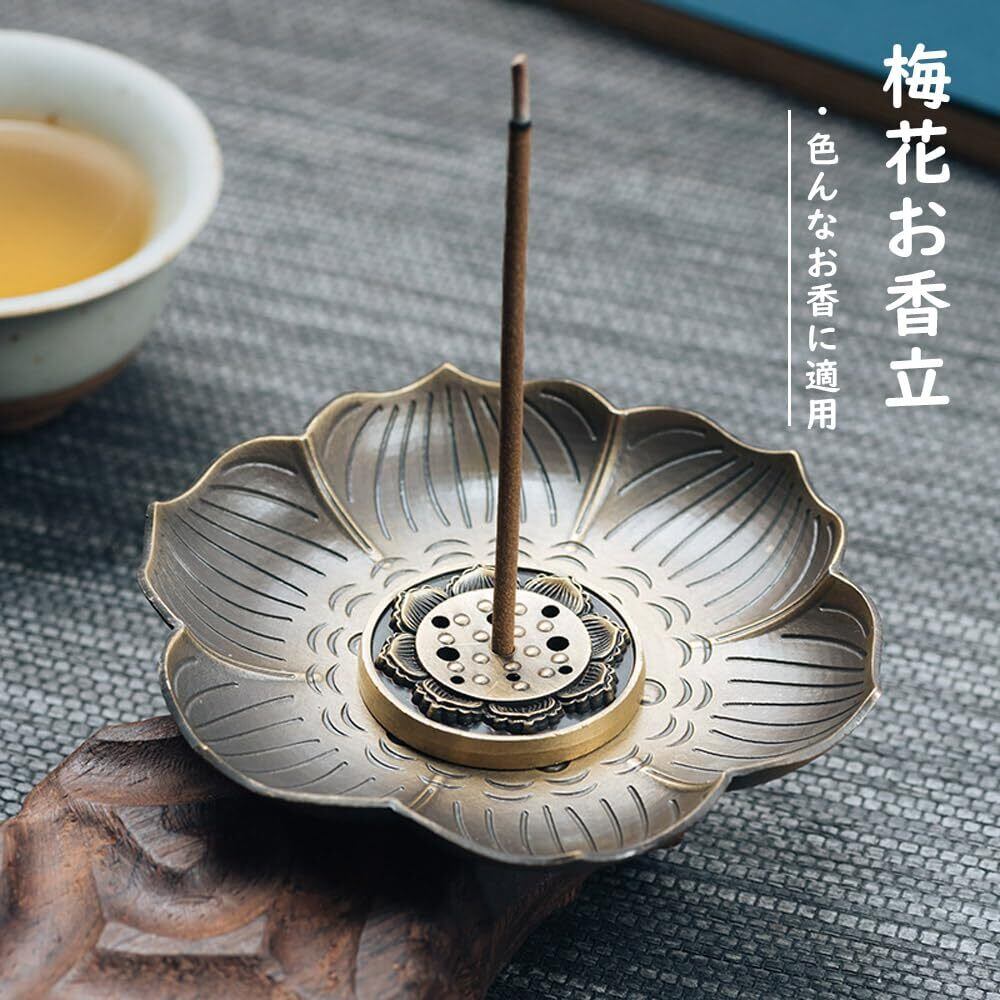 Ryohan お香立て お線香立 香皿 お香置き 線香差し 和風 仏壇用香炉 金属製 灰処分簡単 耐久耐高温 仏壇用 真鍮 癒やし香炉 線香立 多機能 癒しグッズ リラックス 睡眠 ヨガ 喫茶店 睡眠 書斎 瞑想 (梅花)
