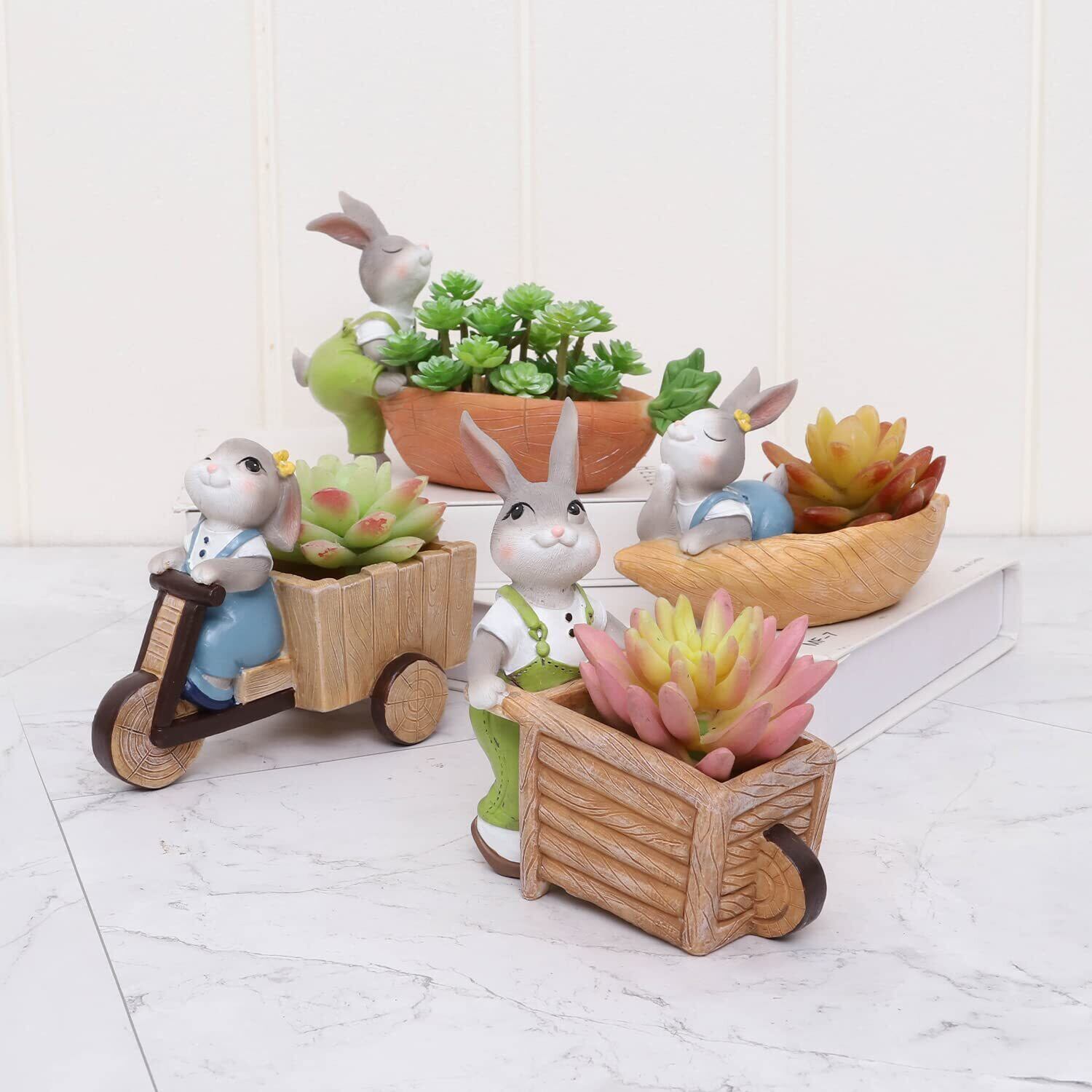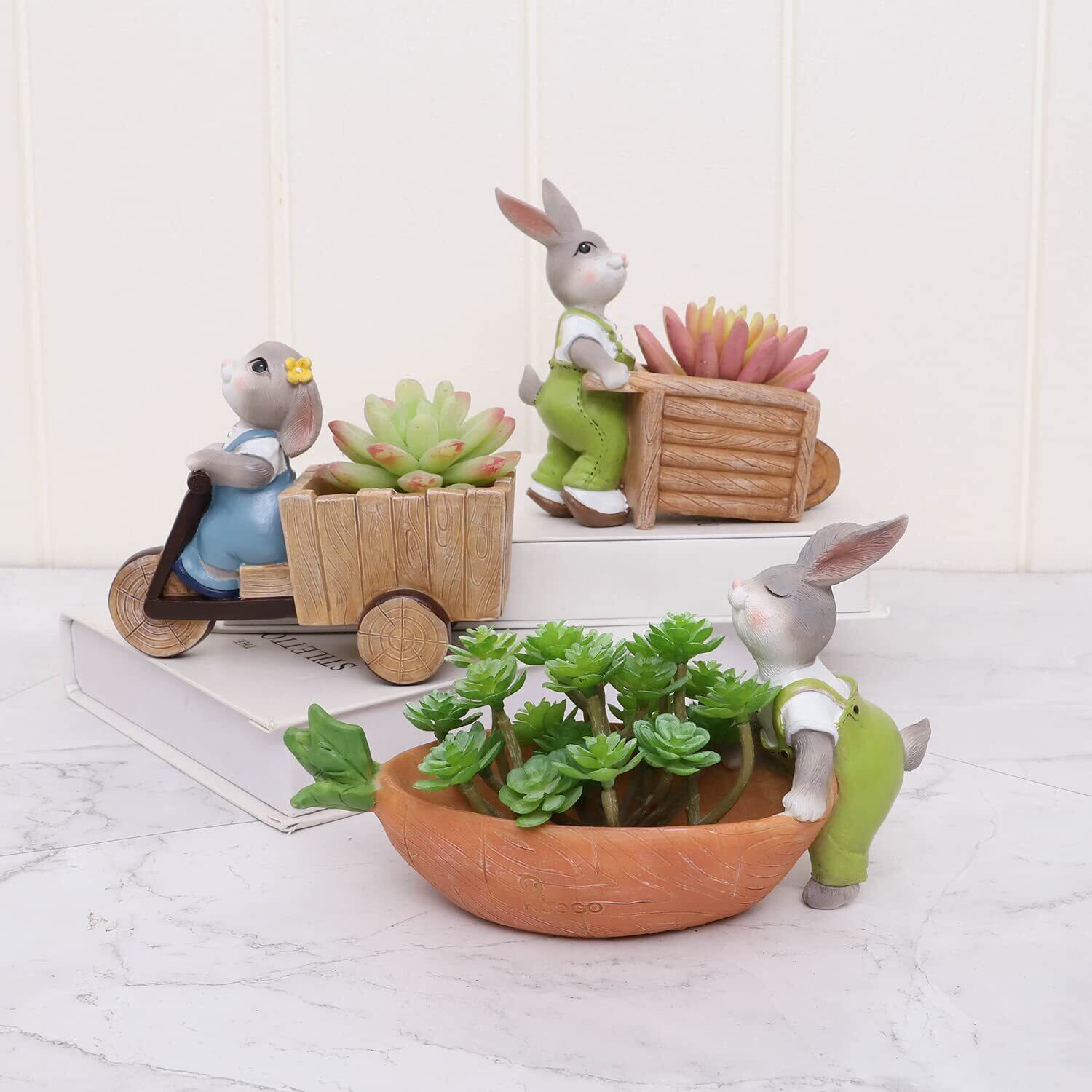 多肉植物に最適な樹脂製の鉢、可愛らしいうさぎの形が特徴