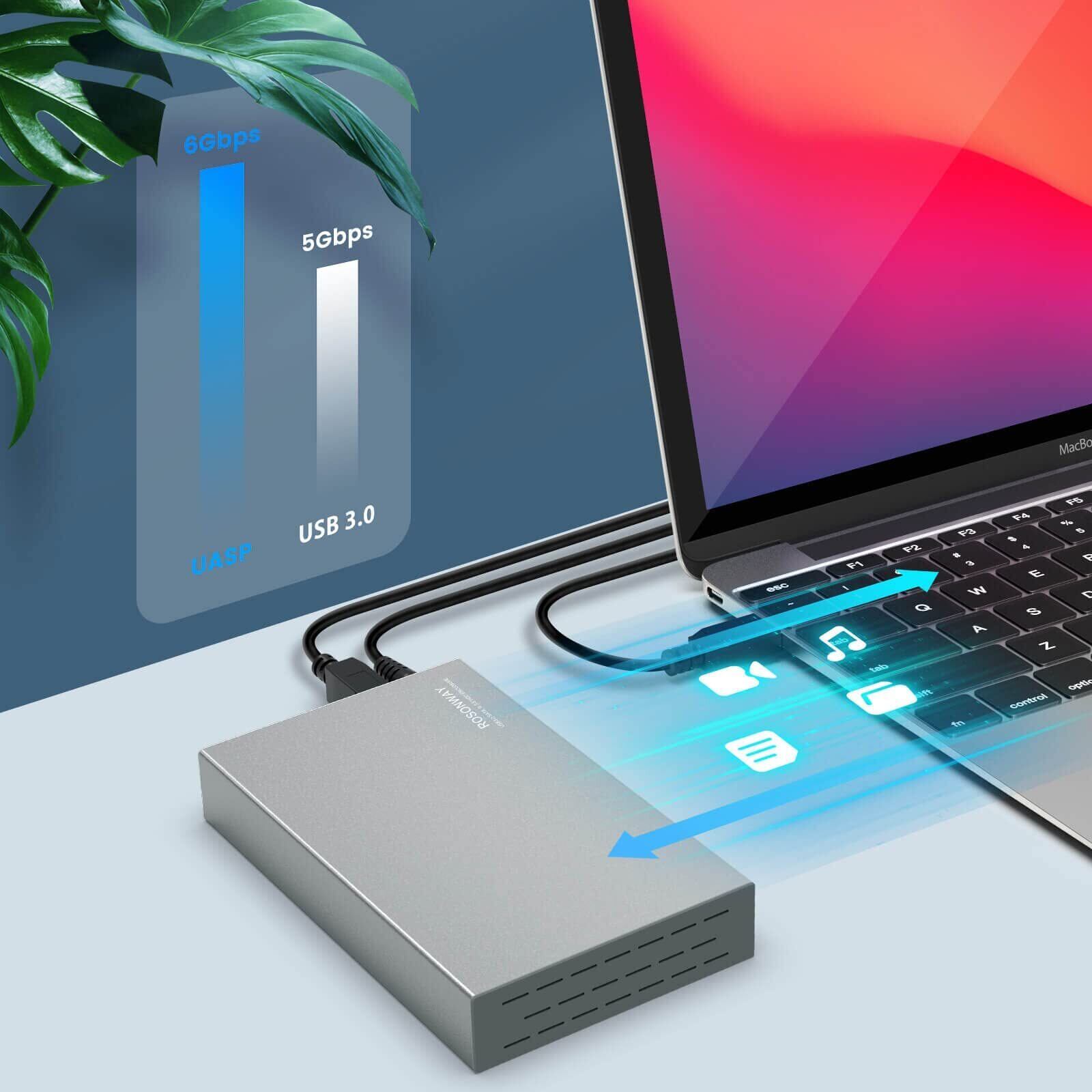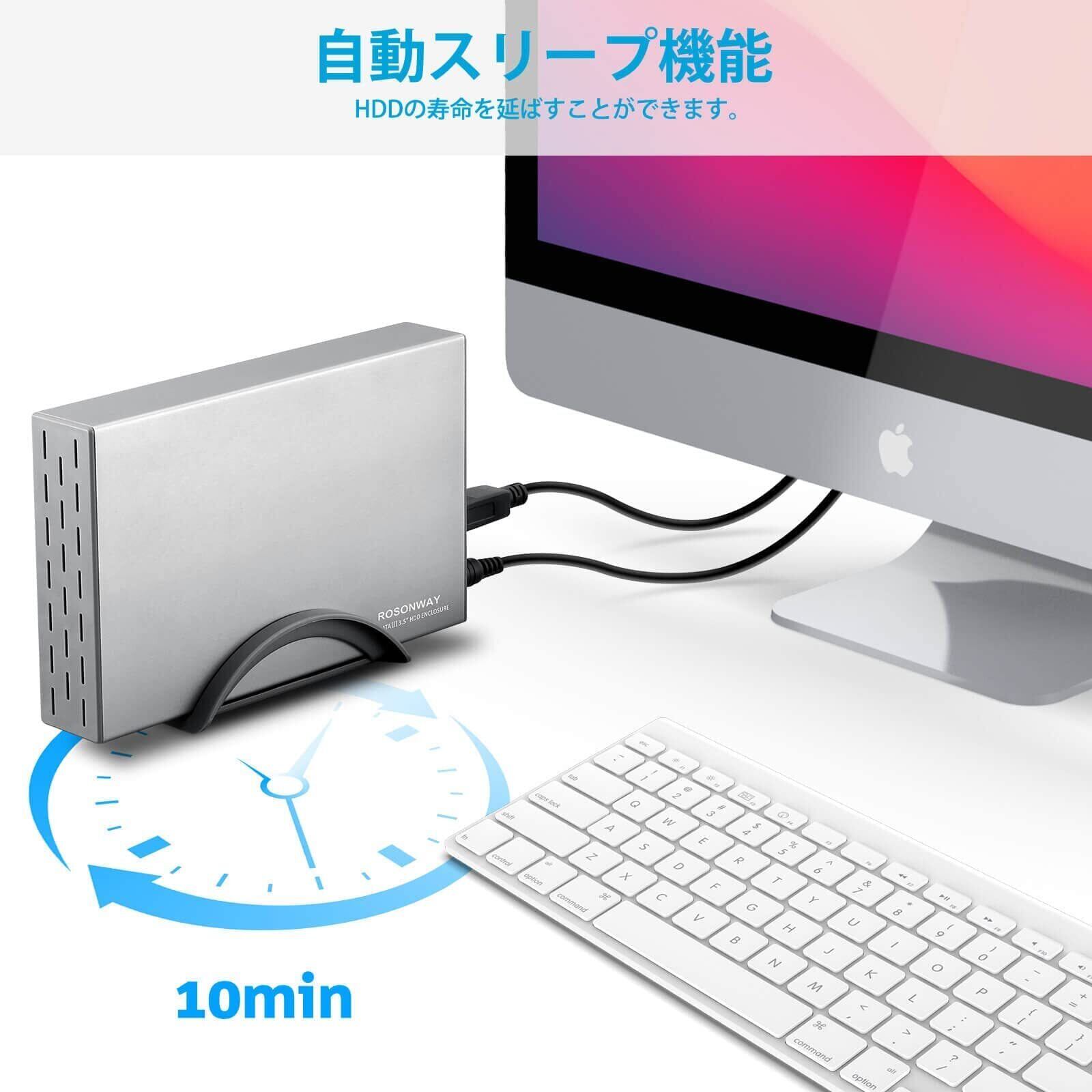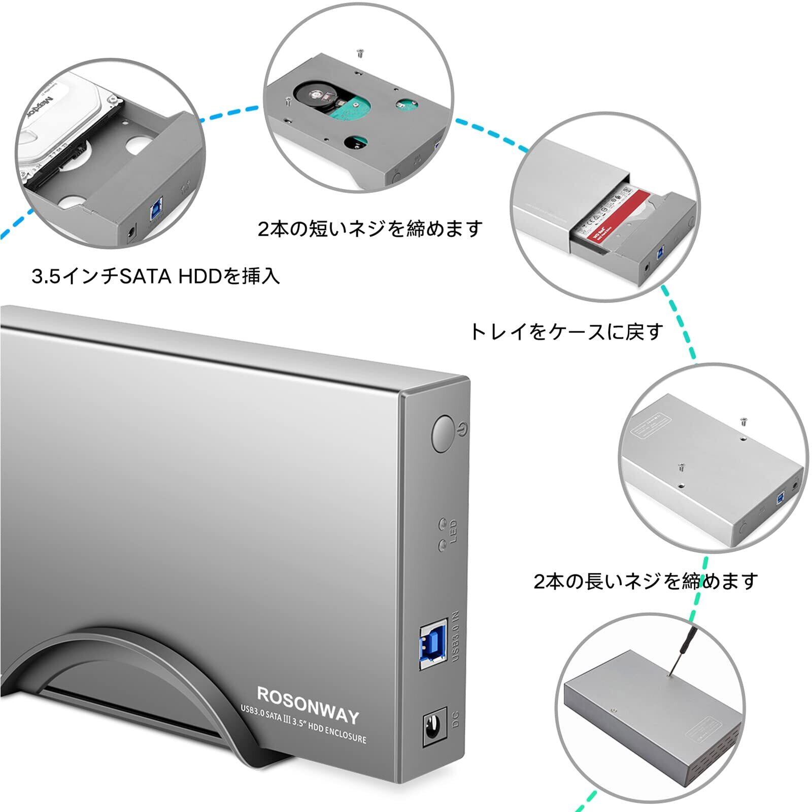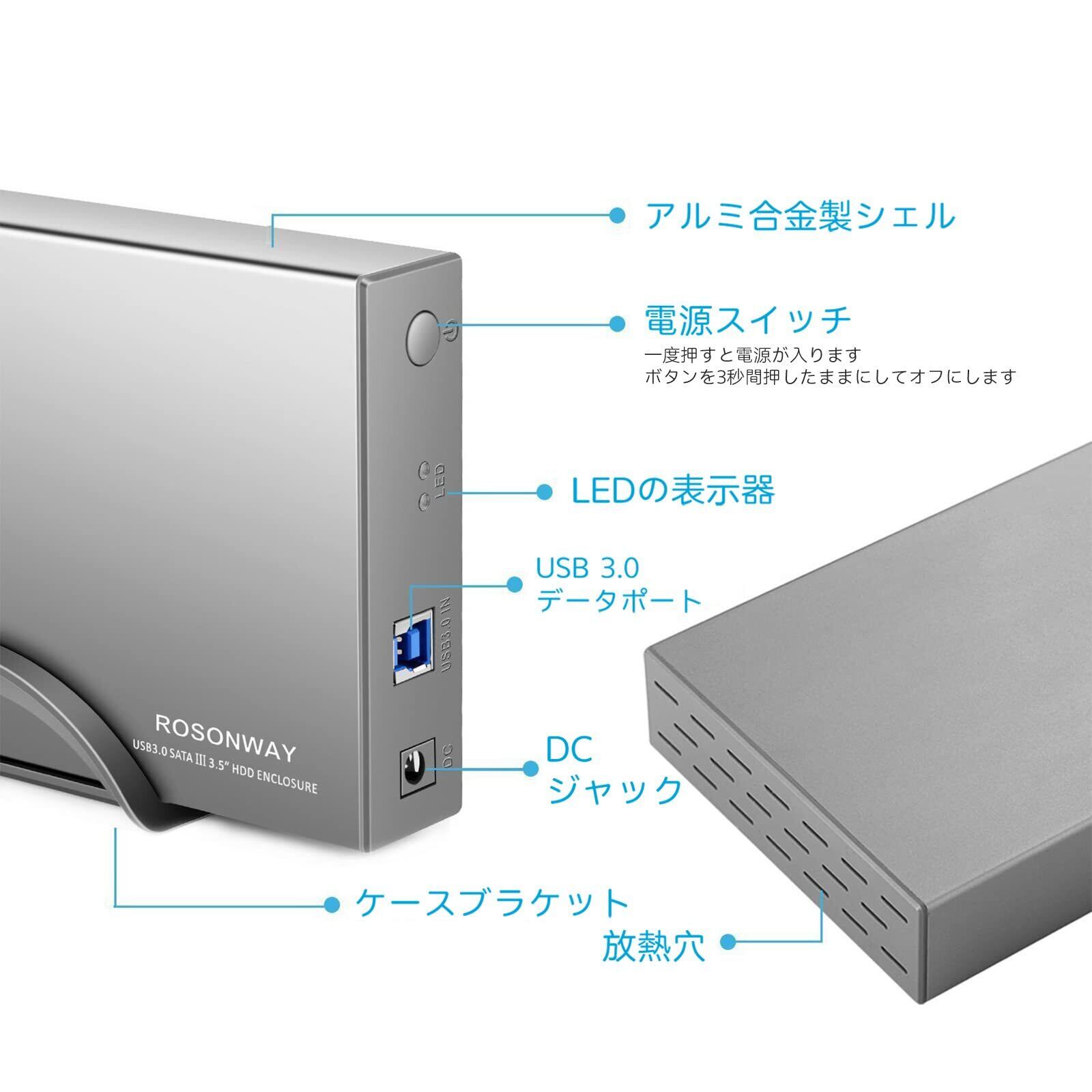 ROSONWAY HDD ケース 3.5インチUSB3.0 外付けハードディスクアルミ製 ドライブケース SATA接続 最大16TBをサポートUASP 自動スリープ機能付き (シルバー)