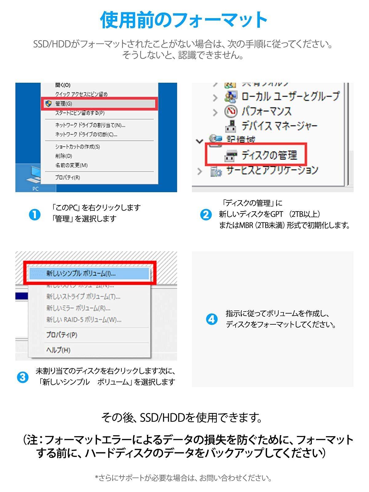 【ASM1153e+12V 2A電源】ASM1153eマスター チップを使用して低消費電力とより安定した伝送を実現し、ハードドライブに複数の保護を提供します。付属の12V2A電源アダプタ(PSE認証取得済み)と接続することで、安定した電源供給が可能です。