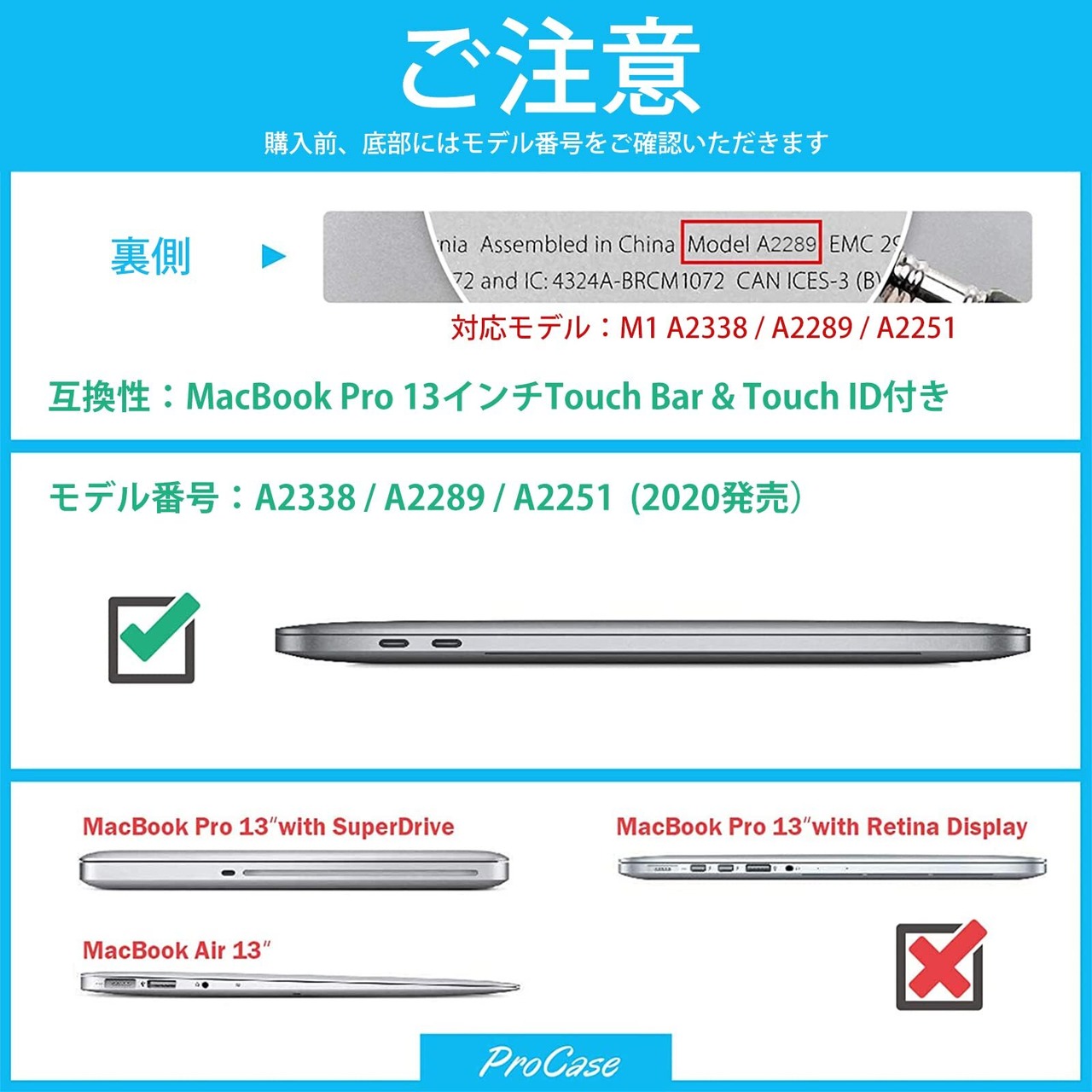対応機種: MacBook Pro 13" M1 (A2338)、MacBook Pro 13" (A2289 A2251)タッチバーとタッチ ID付き 2022 2020発売、その他の型式に適用されません。ご購入前、モデル番号をご確認いただきます。