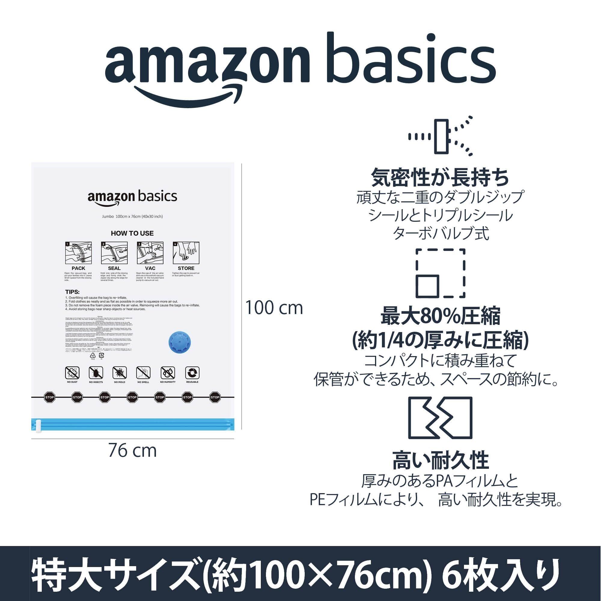 Amazonベーシック 真空 衣類圧縮袋 掃除機不要 ハンドポンプ付き 衣類 収納 旅行 カビ対策 特大(100×76cm)真空 6個パッククリア