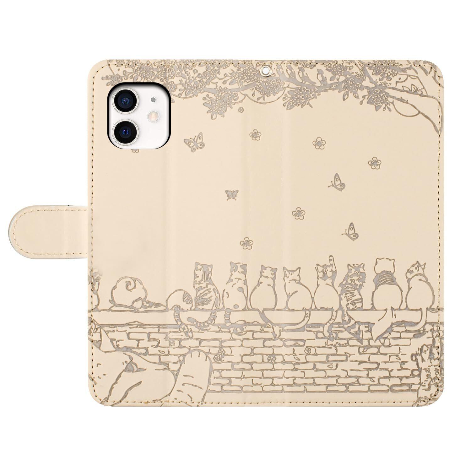iphone12 ケース 手帳型 おしゃれ iphone12pro ケース 手帳型 人気 アイフォン12 ケース手帳型 かわいい猫と美しい桜柄 あいふぉん12ケース手帳型 耐衝撃 アイフォン12 プロケース 手帳型 PUレザー 本革 あいふぉん12プロ/ いphone12/ アイホン12プロ ケース 手帳型 スマホケース カバー カード収納 マグネット式 スタンド機能【6.1インチ】オフホワイト