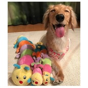 ●柔らかな肌触りと丈夫な縫製でパピーからシニアのワンちゃんまで遊べます。●体の節ごとに一つずつ、計7つのスクィーカーが入っています。