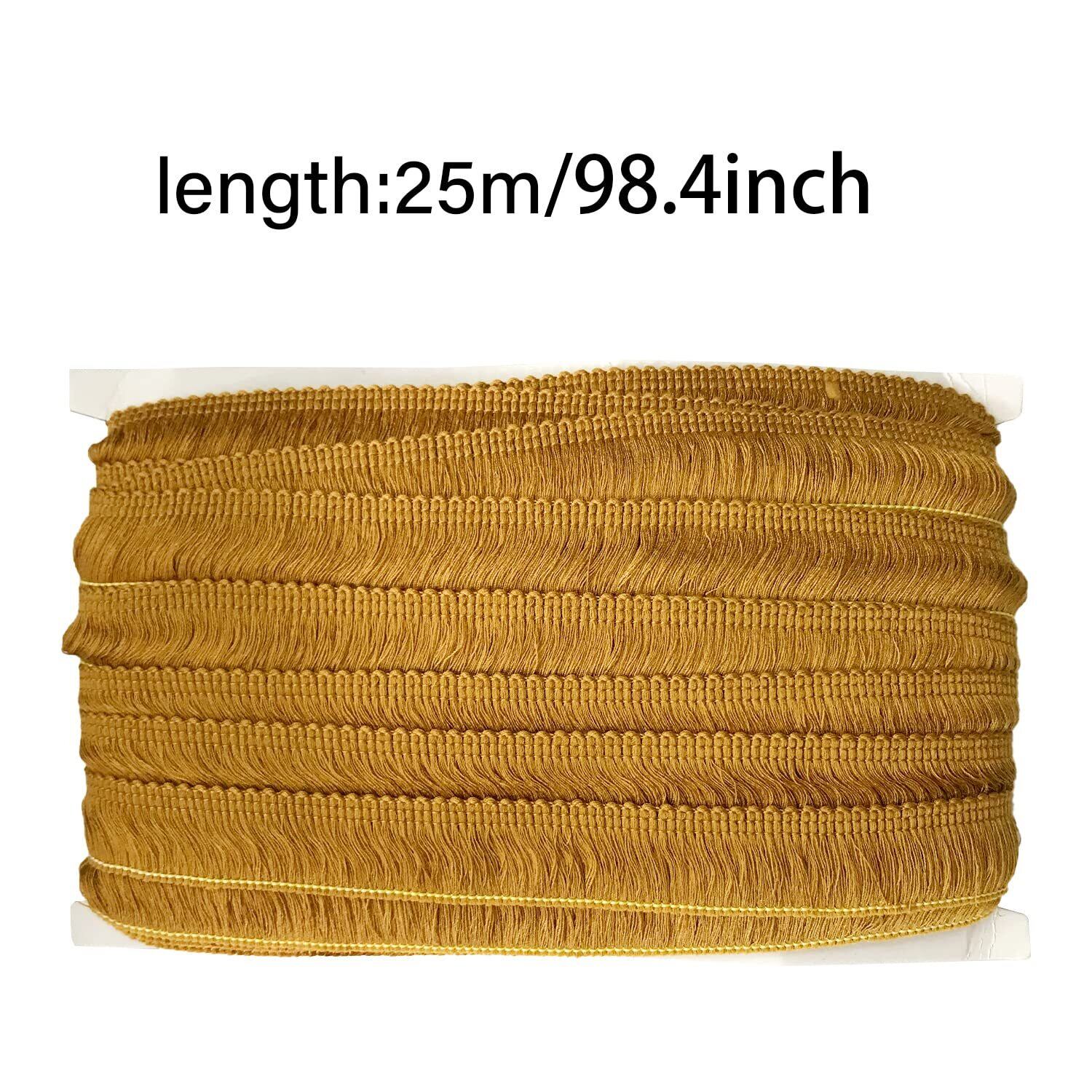 フリンジレース 幅約25mm 長25m テープ リボン タッセル DIY 衣類 カーテン用 飾り (カレー)
