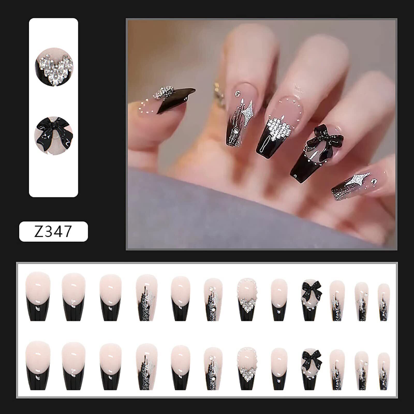 Lwenjing ネイルチップ 付け爪 チップ 3D ネイルチップ 手作りネイルチップ 結婚式ネイルチップ かわいい 短め 長い ネイルチップ 人気 和風 花嫁ネイル 光沢 つけ爪 24枚入 (Z347)